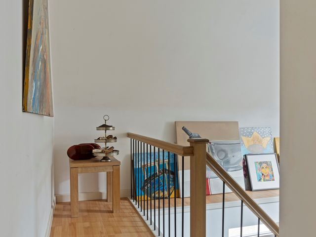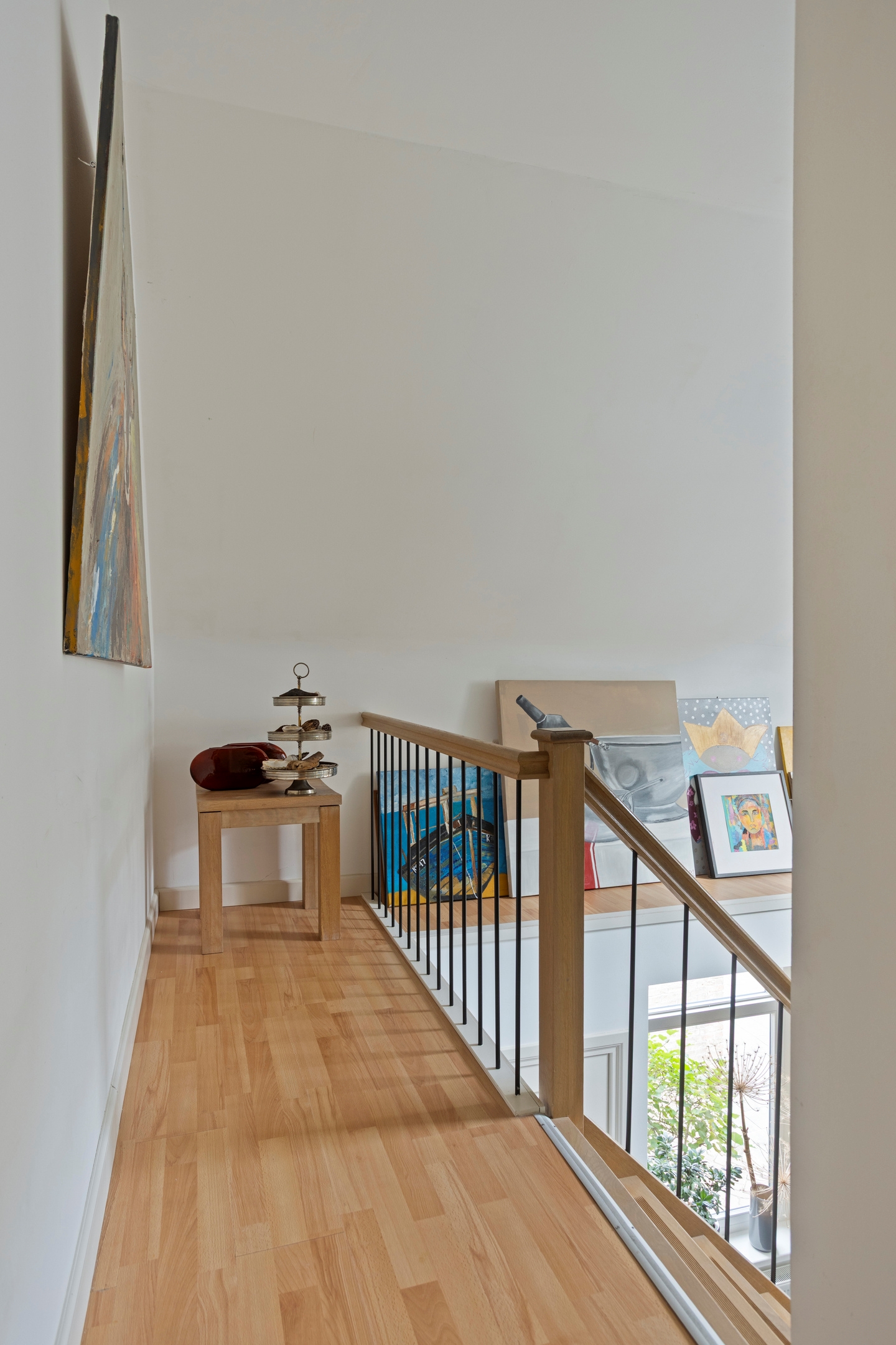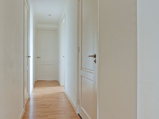 De 2e woonlaag is voorzien van een lichte laminaatvloer, de wanden alsmede de plafonds zijn fijn gestuct. Ook op deze woonlaag hangen paneelbinnendeuren.