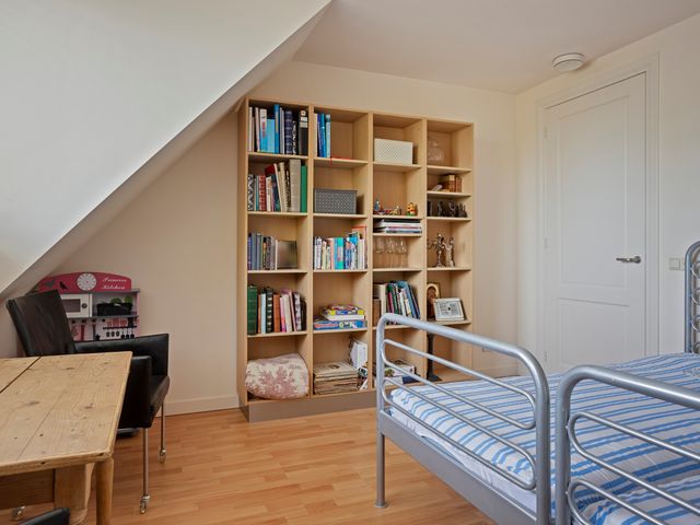 Een L-vormige overloop (betonvloer), met een fraaie vide biedt toegang tot 3 nette slaapkamers, een c.v.-ruimte met een warmte-terugwin-unit & een Nefit combi-ketel (beiden in 2024 vernieuwd) en een riante badkamer. Slaapkamer 1 ligt aan de voorzijde, slaapkamer 2 ligt aan de achterzijde en slaapkamer 3 heeft een royale dakkapel en ligt aan de zijgevel.