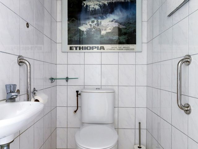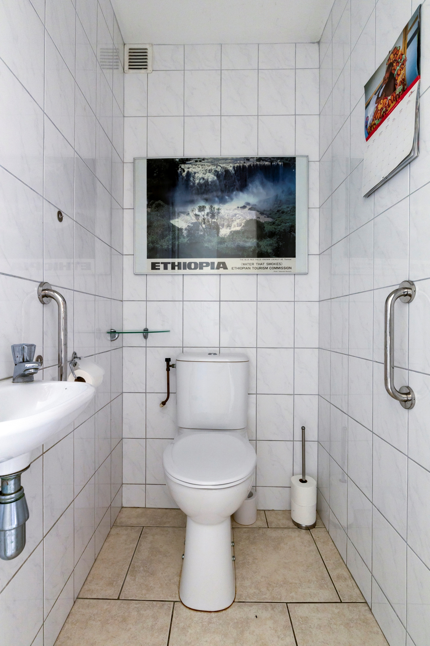 Het toilet is geheel betegeld en voorzien van een closet en een fonteintje.