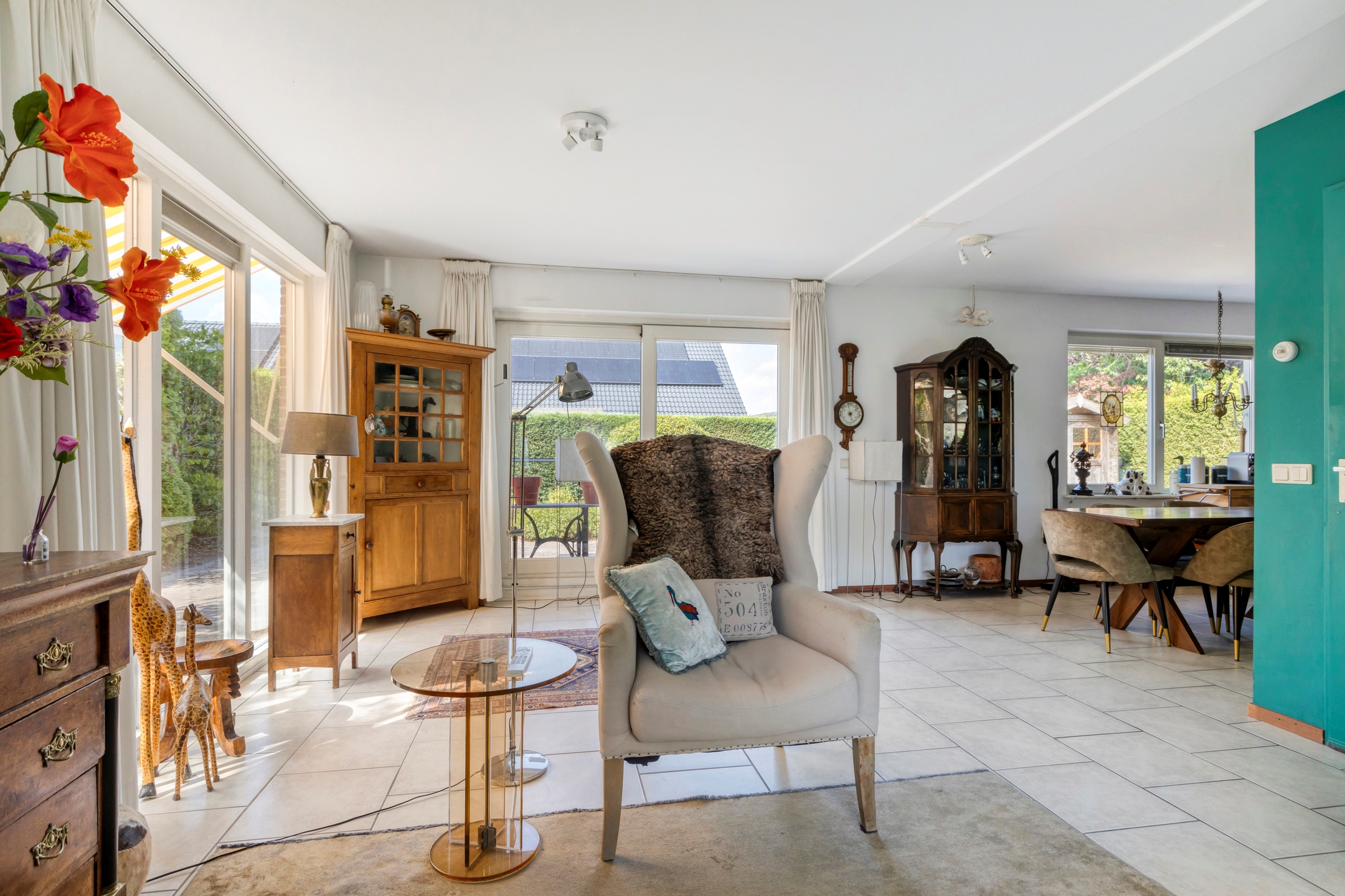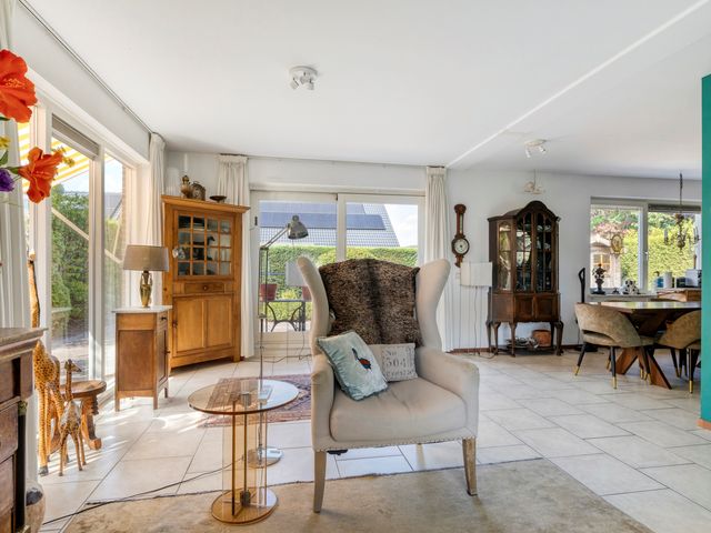- Royale woonkamer met meerdere raampartijen en schuifpui naar de tuin