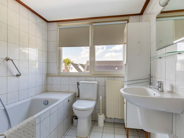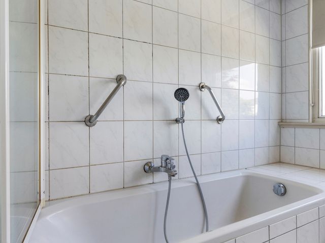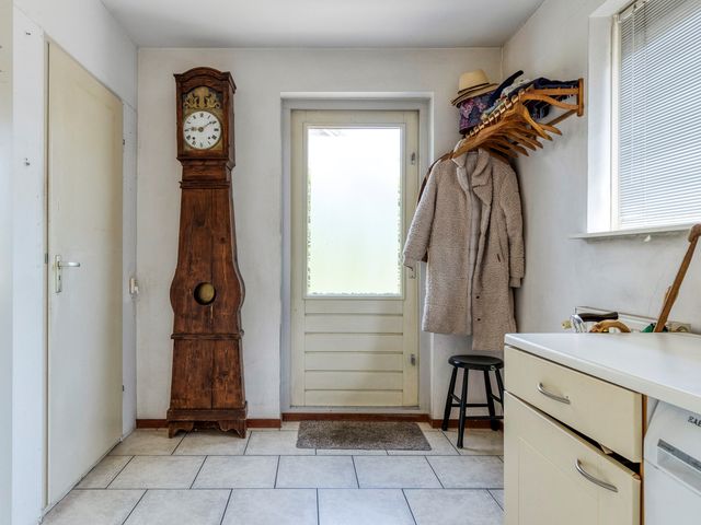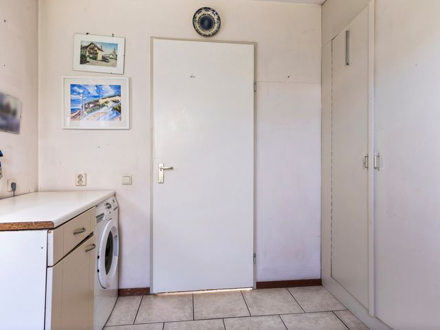 Pluspunt van deze woning is de separaat gelegen bijkeuken. Hier is tevens ruimte voor bijvoorbeeld de wasmachine en droger. Tevens bevindt zich hier de cv-installatie. De tegelvloer maakt deze ruimte praktisch in het onderhoud.