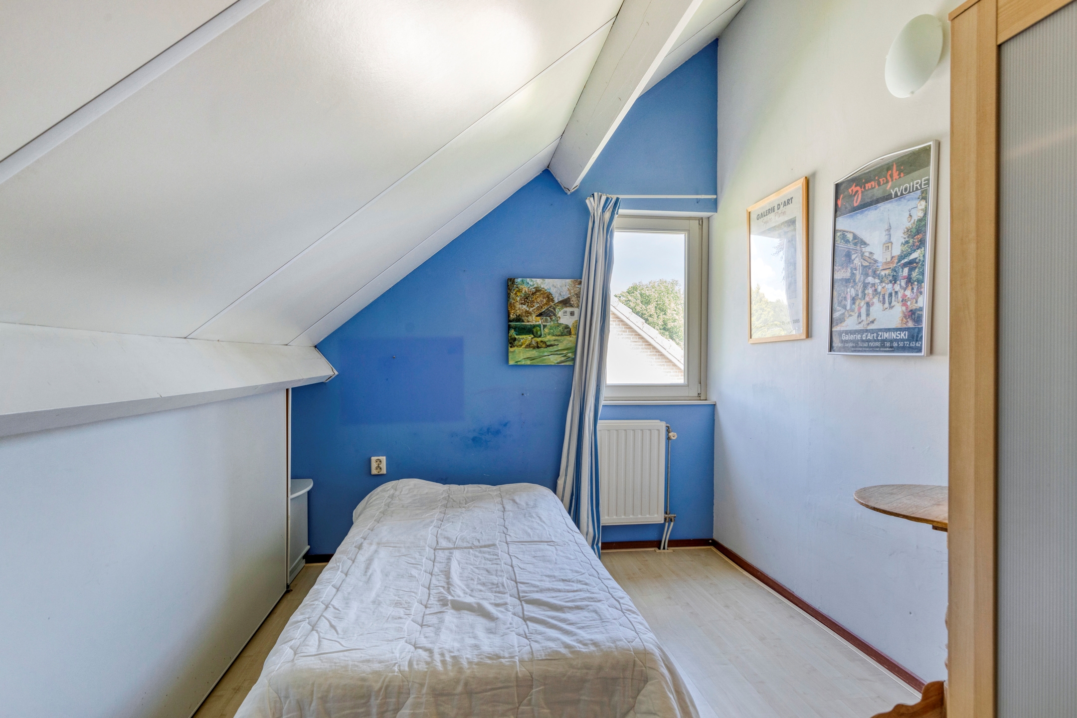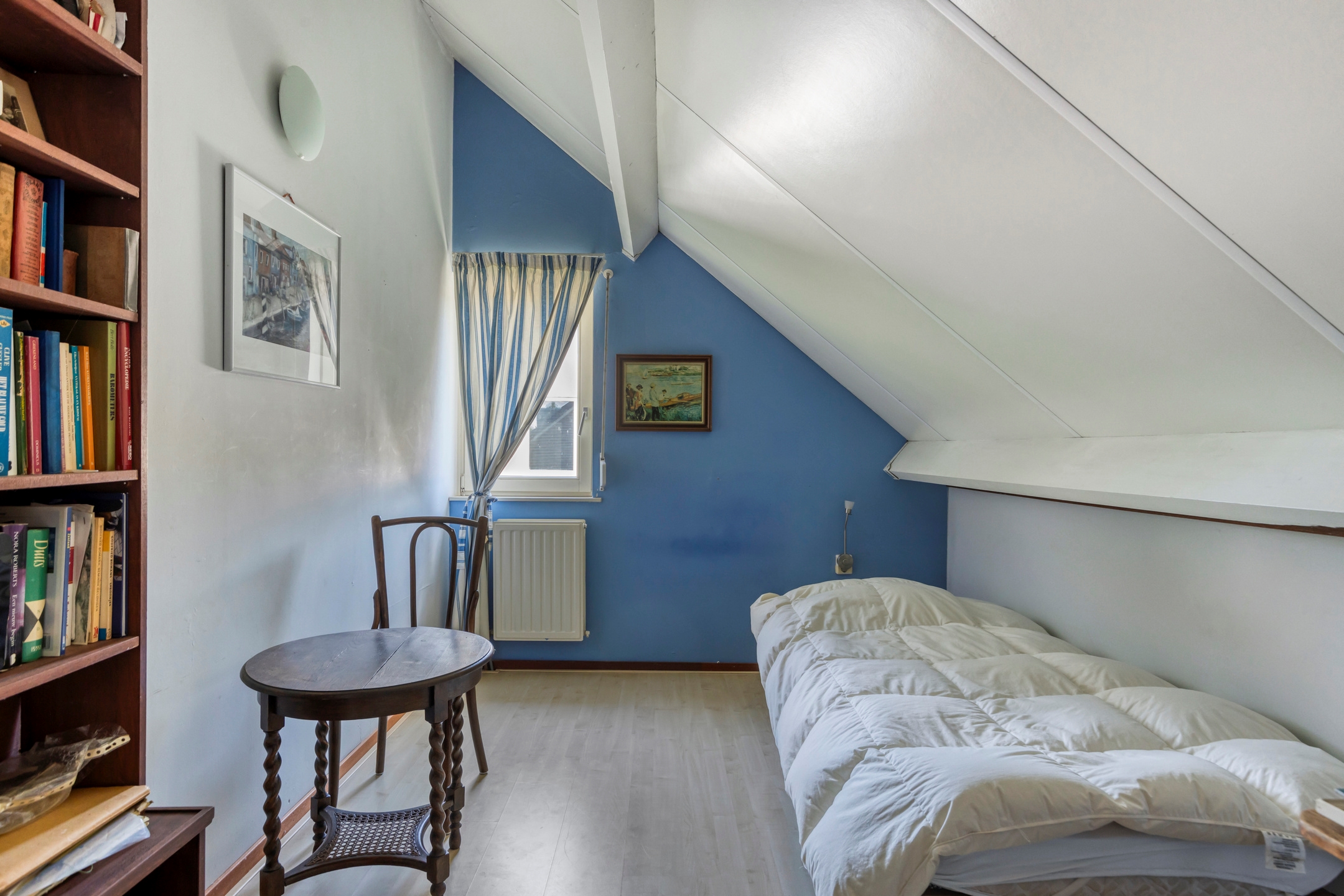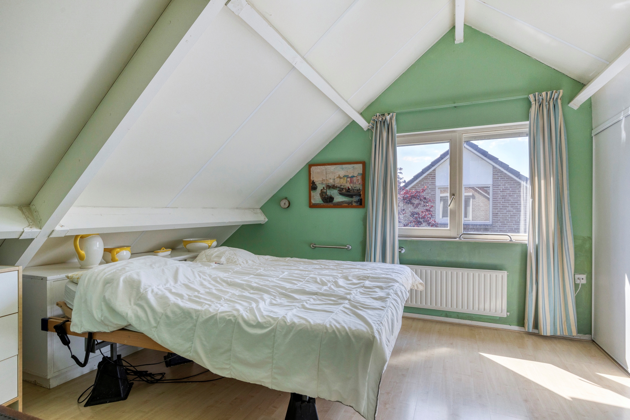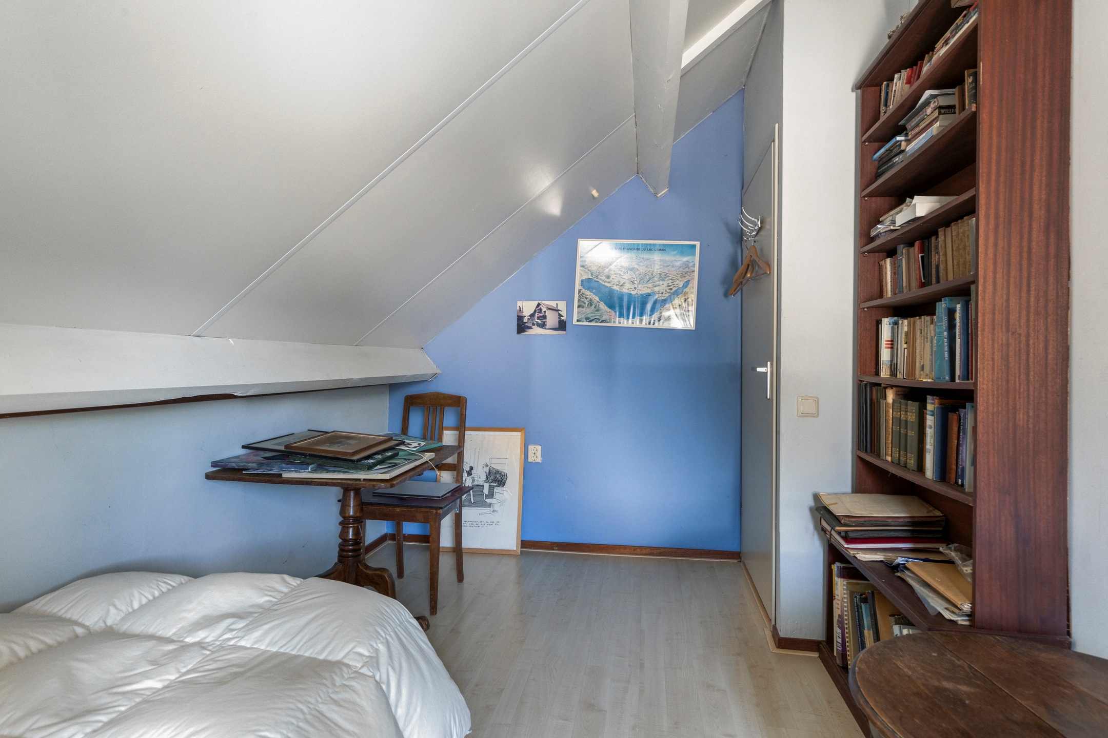 De slaapkamers bieden extra bergruimte onder de schuine kap, zijn afgewerkt met laminaatvloeren en genieten van een mooie lichtinval dankzij de ramen.