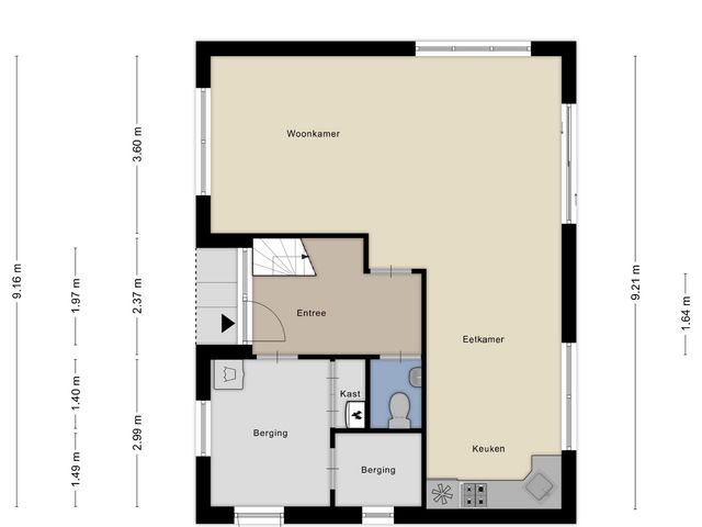 De gebruikte meetinstructie volgt de NEN2580-norm. Deze methode biedt een uniforme manier om het gebruiksoppervlak te benaderen. Door variaties in interpretatie, afronding of meetbeperkingen kunnen er toch afwijkingen ontstaan. De feitelijke situatie in het huis is leidend. De verstrekte oppervlakte-informatie is indicatief en mag niet als exact worden beschouwd. “Wat je ziet is wat je koopt” blijft het uitgangspunt.