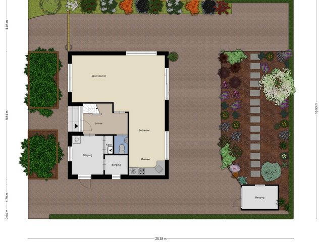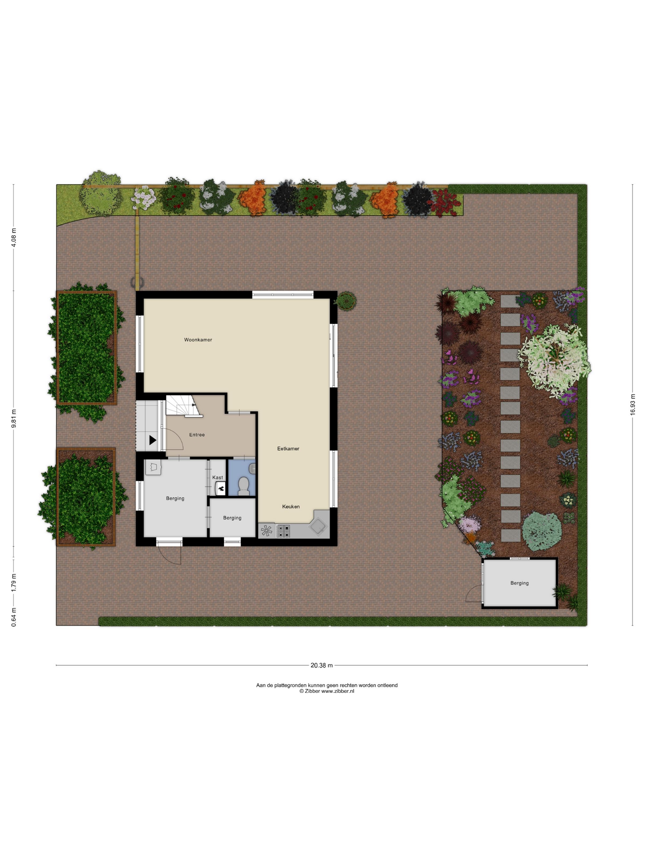 De tuin is verzorgd aangelegd met sierbestrating en vaste beplanting, en beschikt over een houten berging.