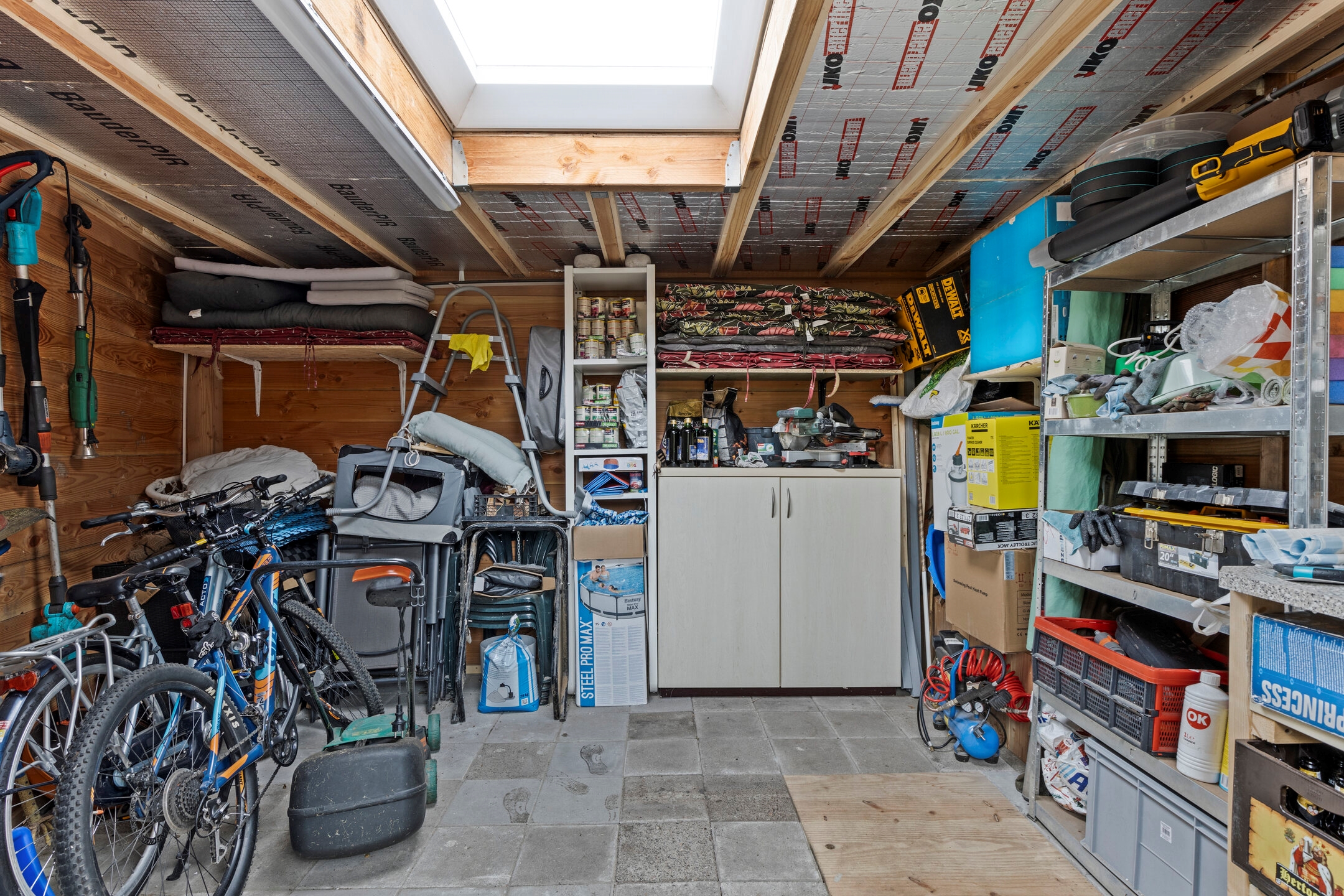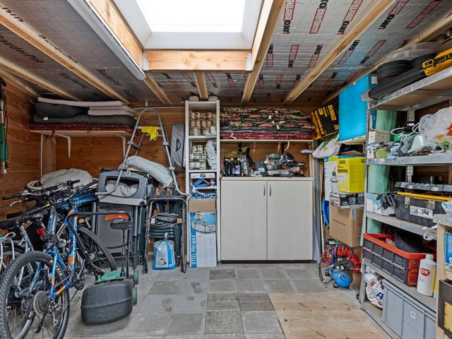 Op de begane grond bevindt zich tevens een praktische berging, voorzien van een aansluiting voor de wasmachine. Deze ruimte biedt volop mogelijkheden voor opslag en huishoudelijke apparatuur.