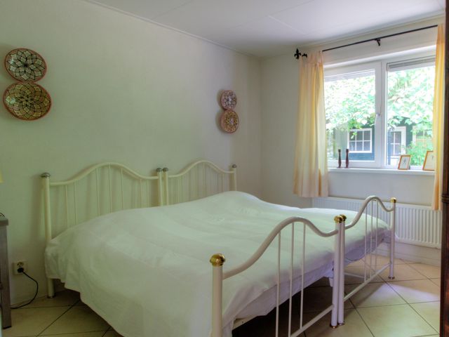 De 1e slaapkamer op de benedenverdieping is rustig gelegen aan de achterzijde van de woning en kijkt uit op de tuin. De slaapkamer heeft een lichte afwerking van de wanden en het plafond. De vloer is voorzien van een tegelvloer.