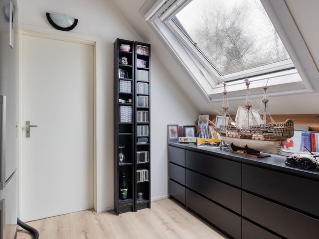 Verder treft u in de 2 slaapkamers handige ingebouwde kasten c.q. bergruimte in de knieschotten aan.