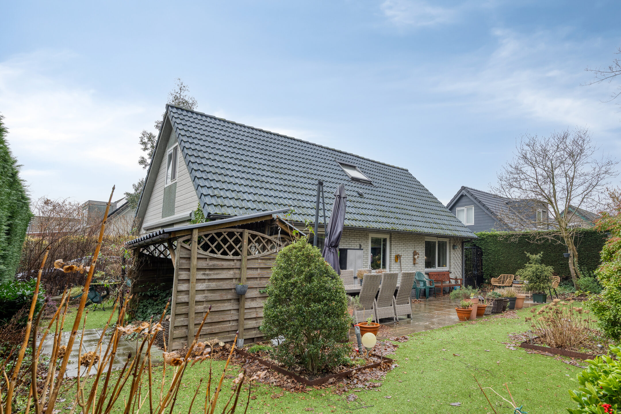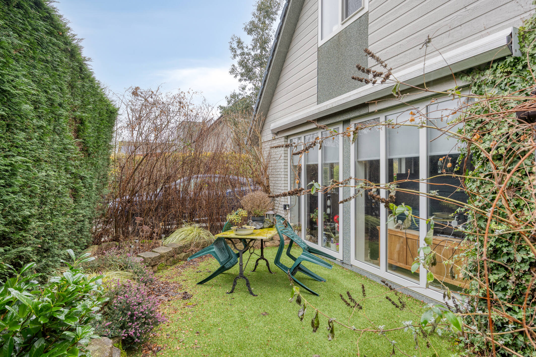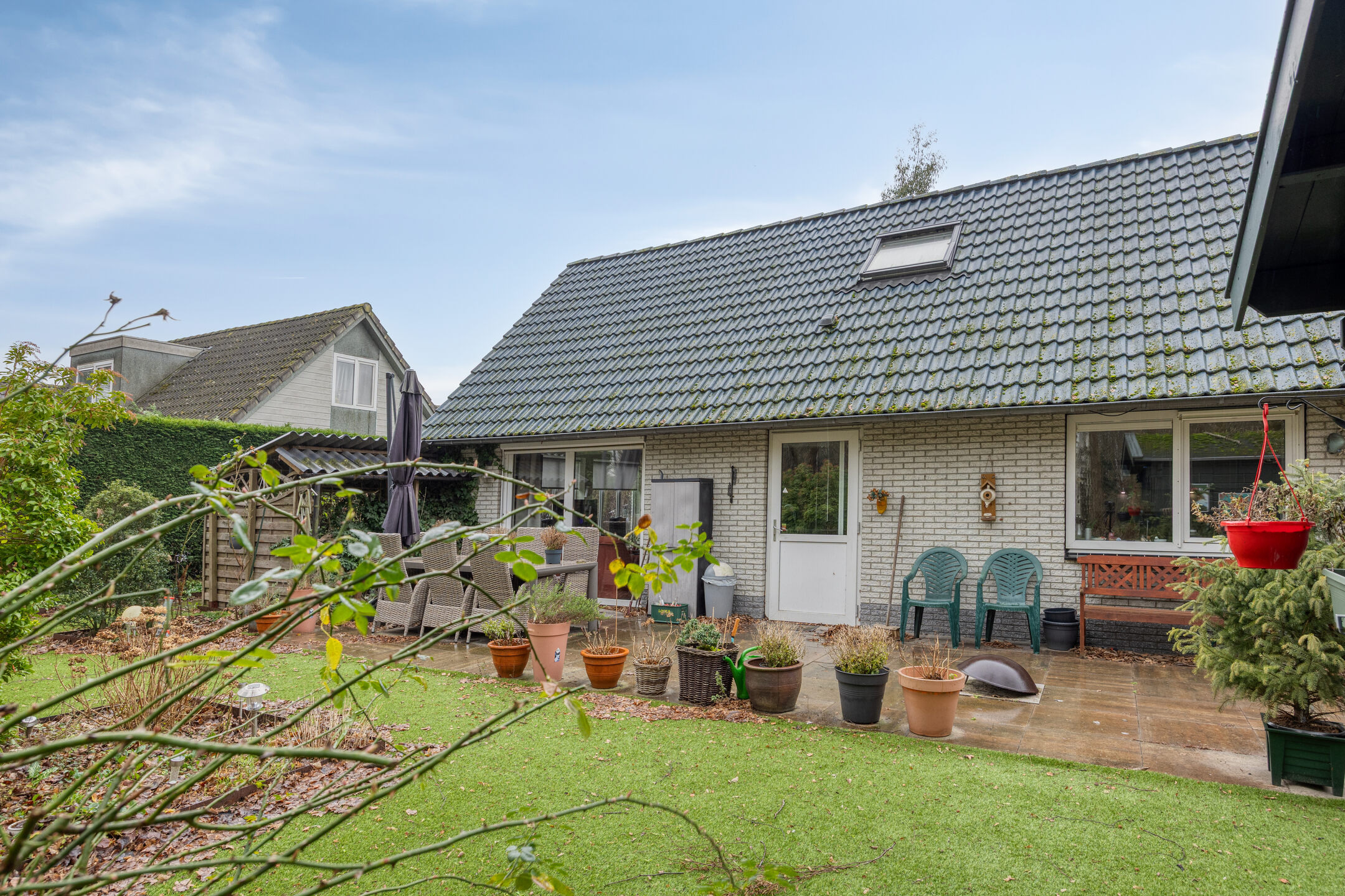 De privacy is dik in orde en u kunt maximaal genieten van de buiten momenten. Aan de voorzijde van de woning kunt u 2 auto's parkeren.