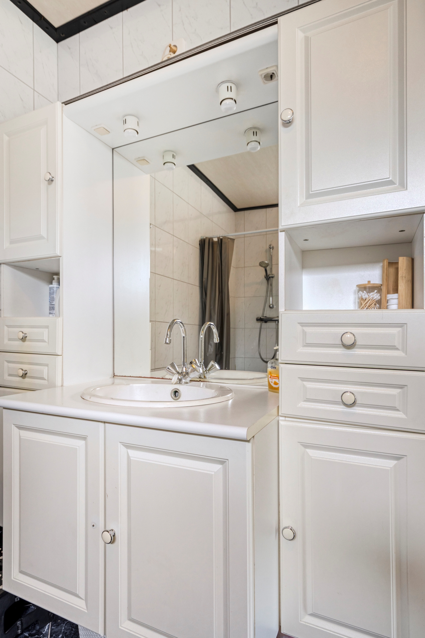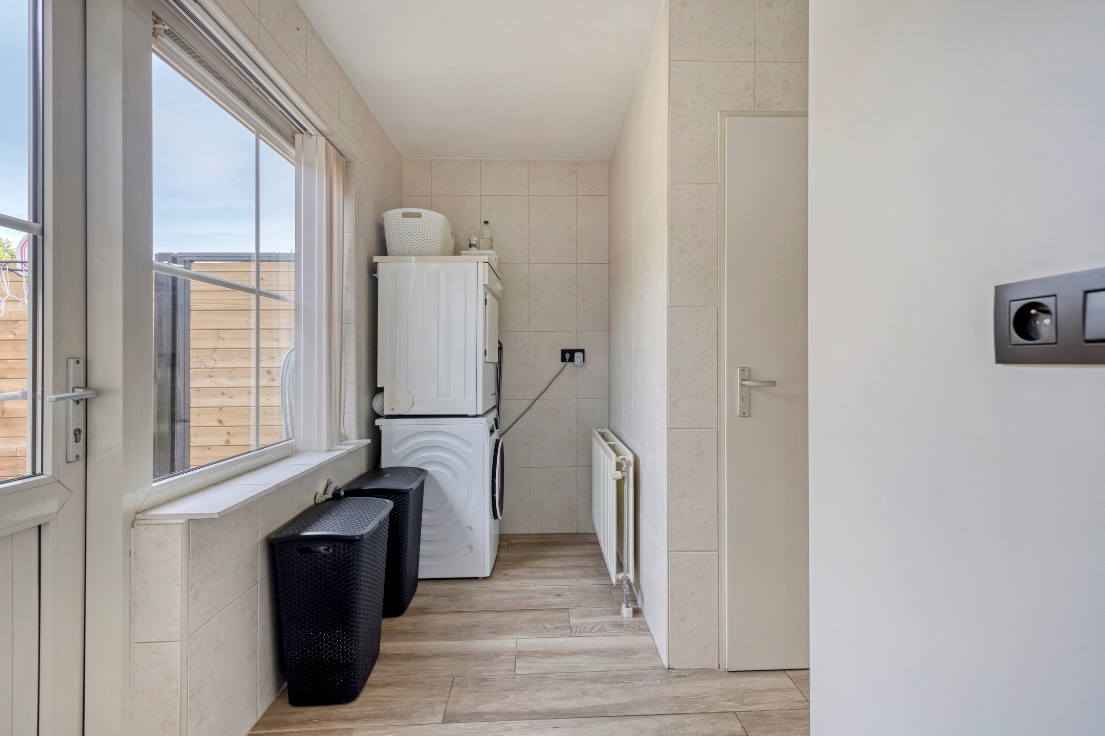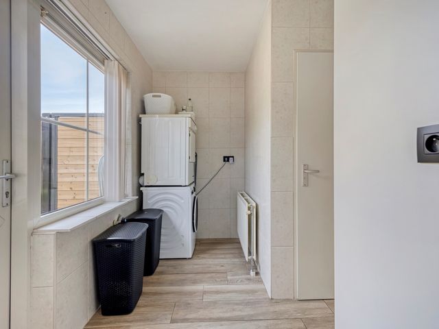 De bijkeuken is voorzien van betegelde wanden, een vaste kast en een aansluiting voor een was-droogcombinatie. Vanuit de bijkeuken heeft u toegang tot het toilet, de badkamer en de cv-ruimte.