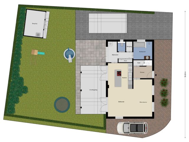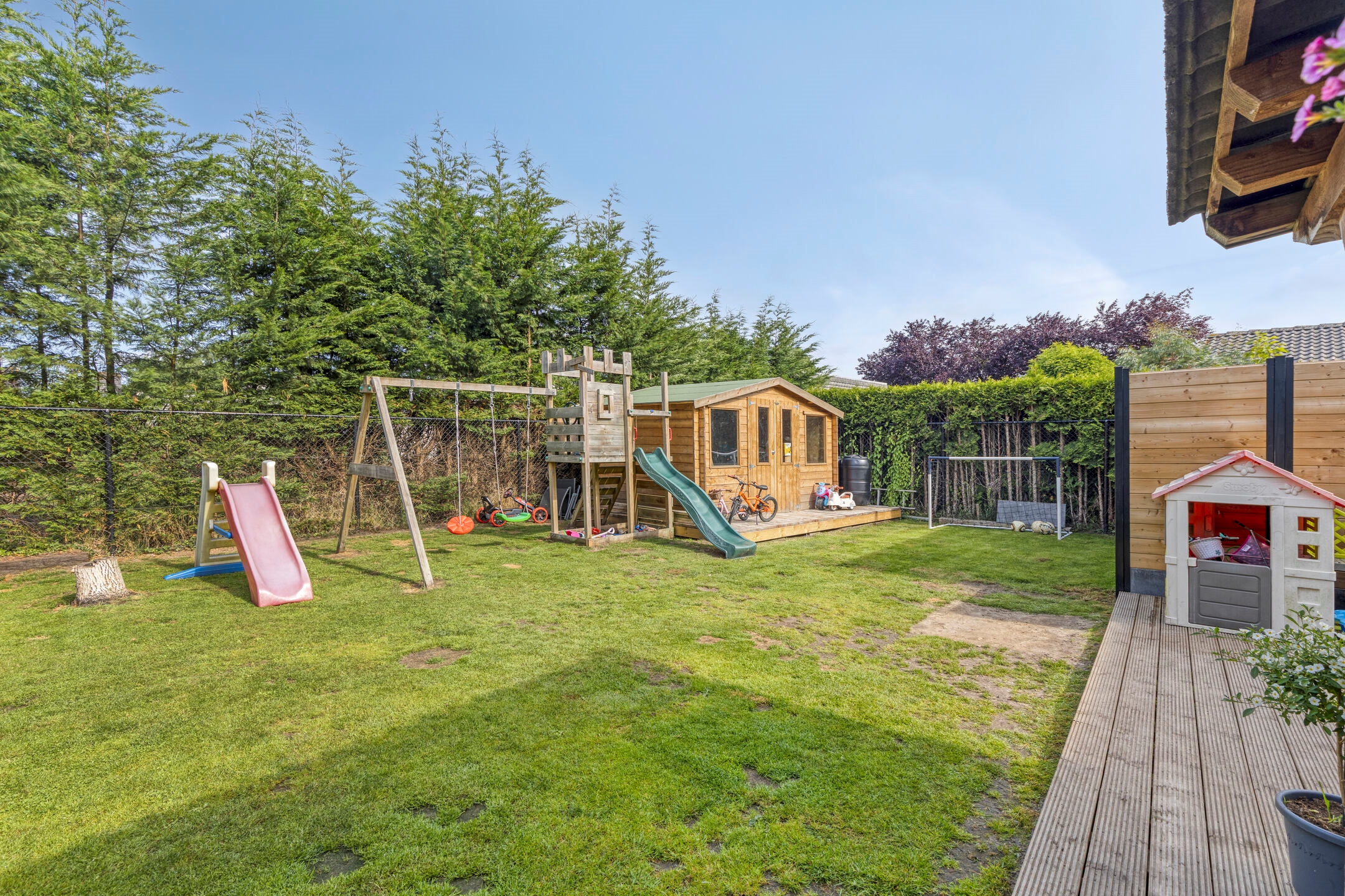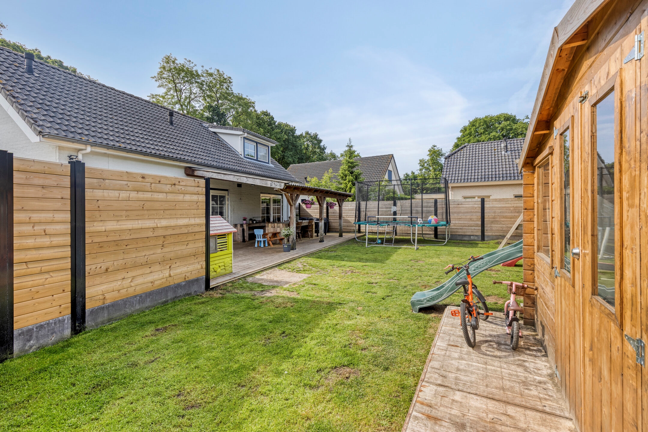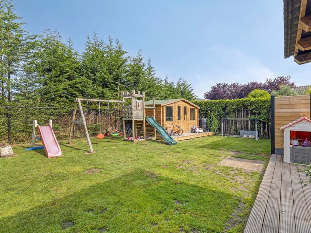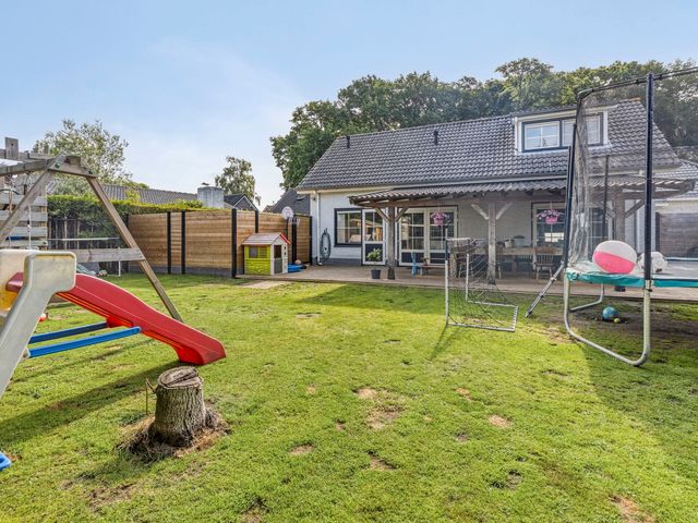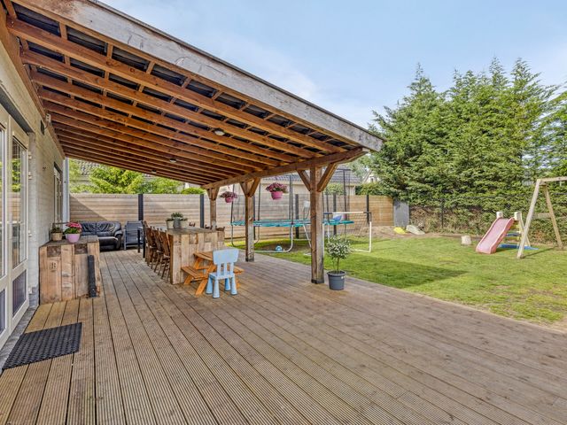 Deze vrijstaande, royale woning met drie slaapkamers en een ruime begane grond staat op een perceel van ca. 411 m² eigen grond. De keurige achtertuin biedt volop privacy en beschikt over een tuinhuis.