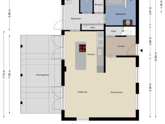 De gebruikte meetinstructie volgt de NEN2580-norm. Deze methode biedt een uniforme manier om het gebruiksoppervlak te benaderen. Door variaties in interpretatie, afronding of meetbeperkingen kunnen er toch afwijkingen ontstaan. De feitelijke situatie in het huis is leidend. De verstrekte oppervlakte-informatie is indicatief en mag niet als exact worden beschouwd. “Wat je ziet is wat je koopt” blijft het uitgangspunt.
