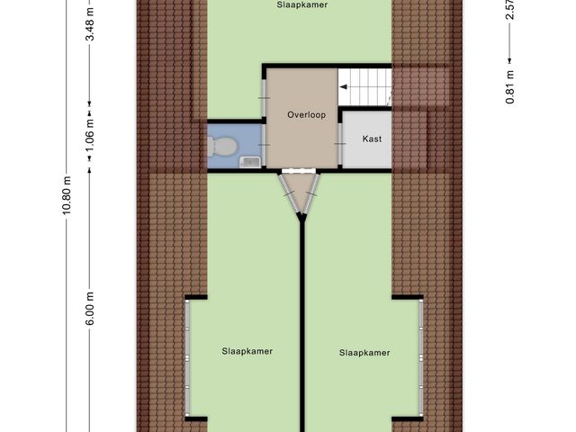 De overloop geeft toegang tot 3 volwaardige slaapkamers, een vaste kast en een separaat toilet.