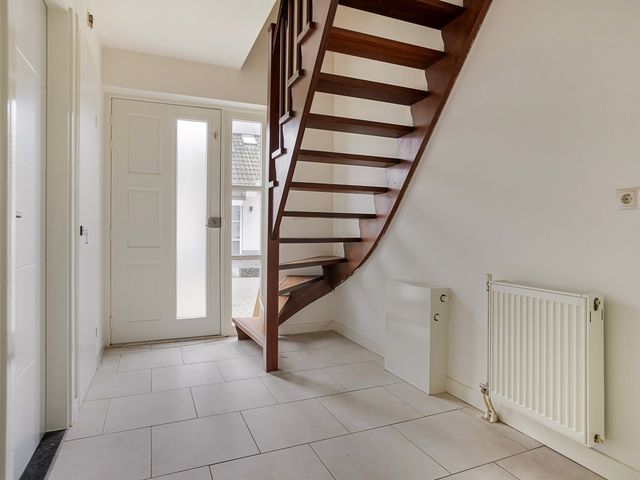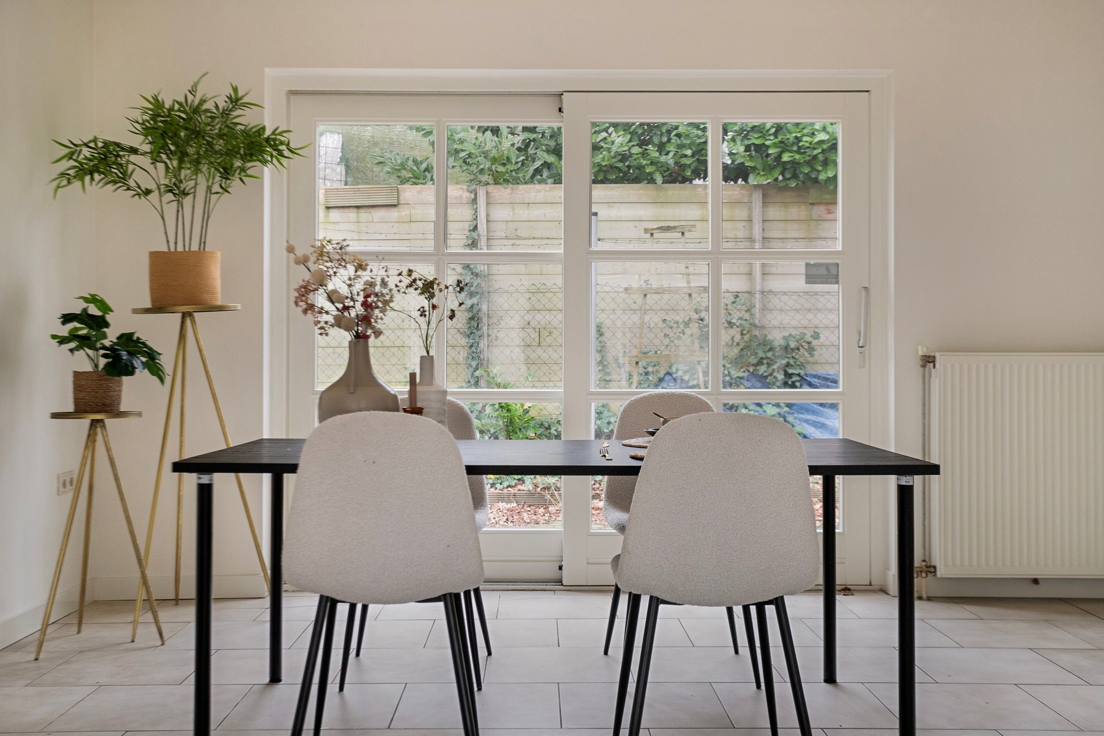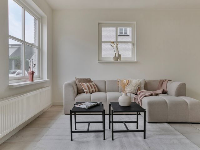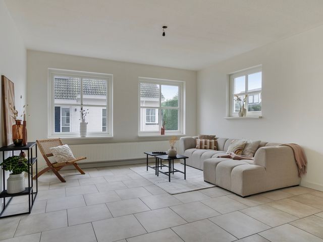 De royale woonkamer is er een met veel licht door de vele raampartijen. Middels de schuifpui heeft u toegang tot de achtertuin en deze zorgt voor extra lichtinval. De woonkamer is afgewerkt met een tegelvloer die doorloopt over de gehele begane grond (m.u.v. de badkamer en slaapkamer) en stucwerk wandafwerking.