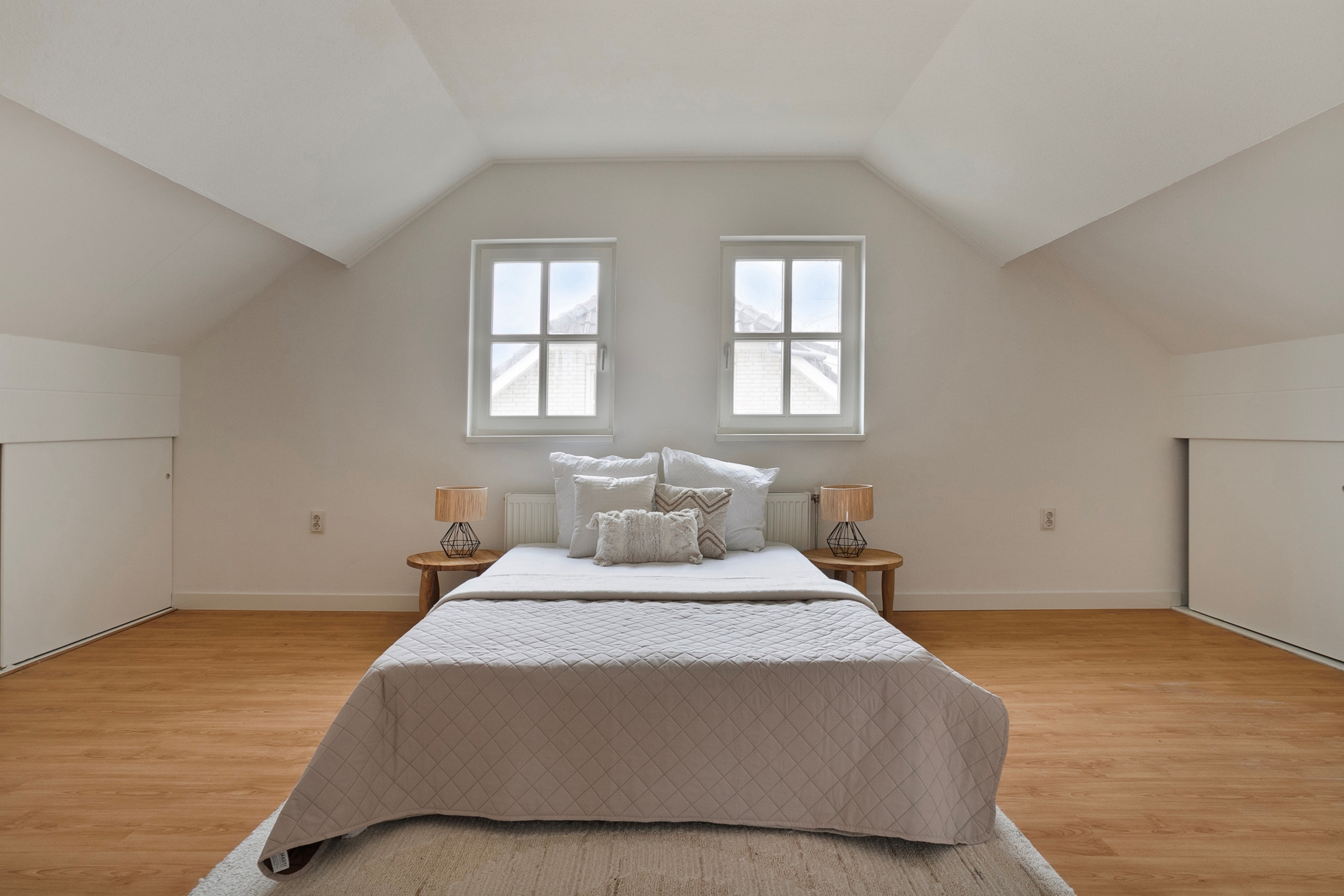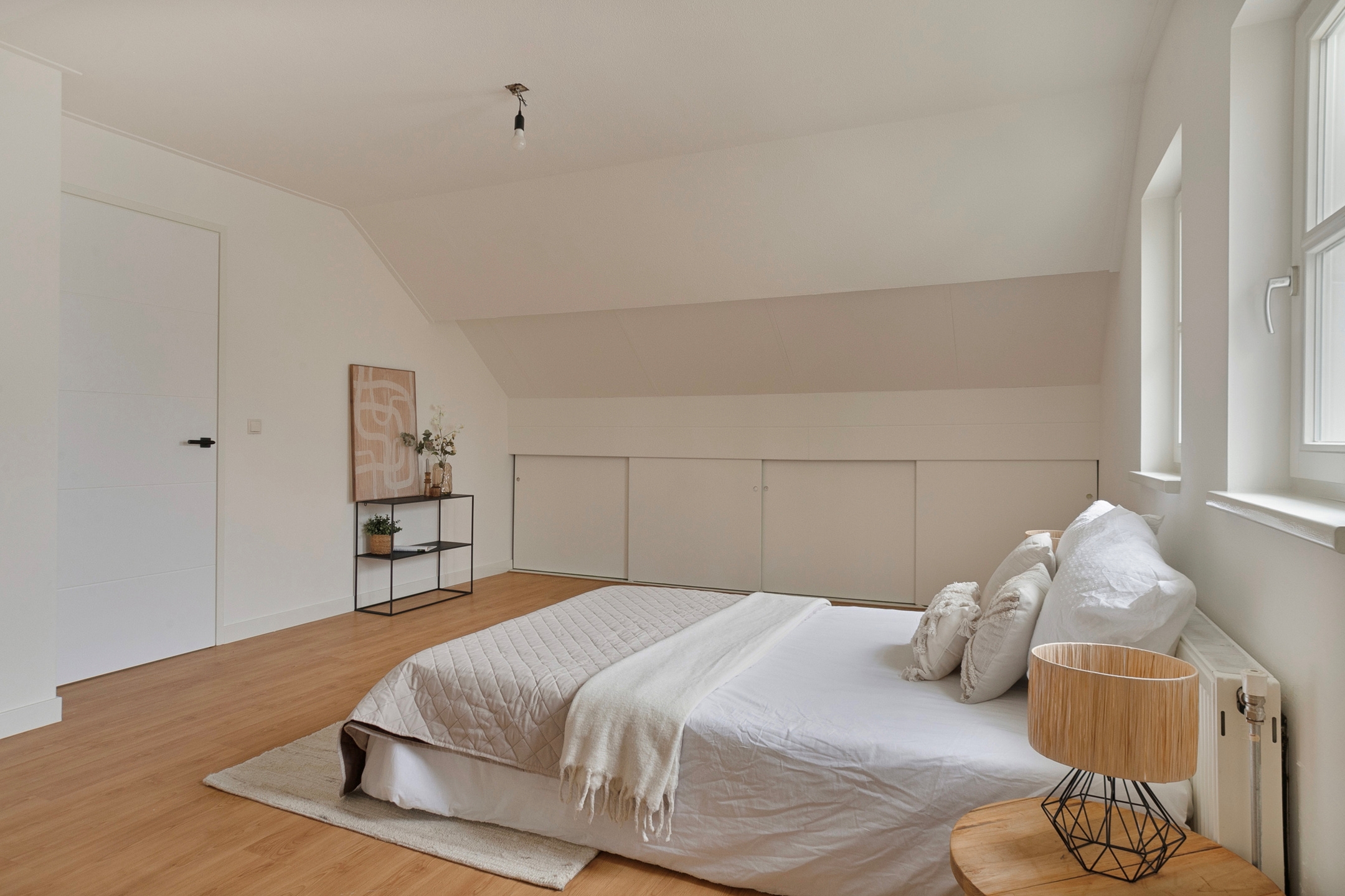 De slaapkamers ruim van afmeting en zijn voorzien van raampartijen met draai-/kiepramen en de vloer is voorzien van laminaat. 2 slaapkamers beschikken over berging achter het knieschot.
