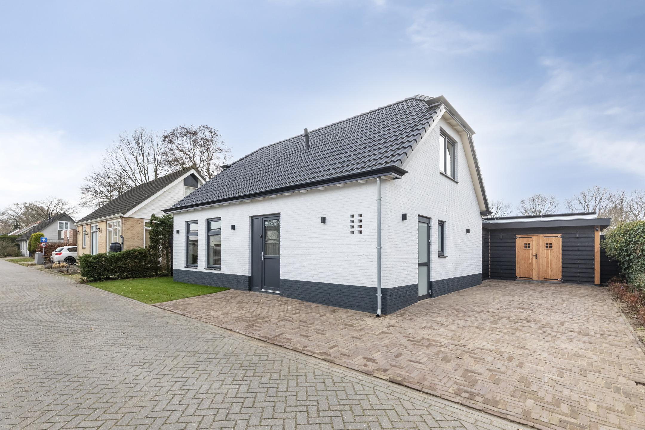 - De woning is aan de buitenzijde voorzien van buitenverlichting met dag/nacht sensoren