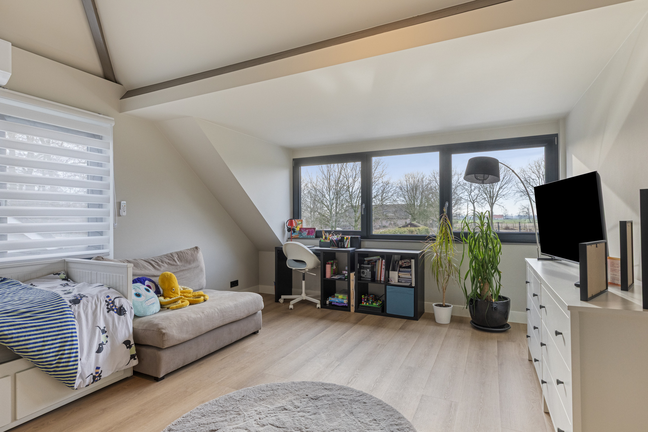Daarnaast beschikt de woonkamer over airconditioning die zowel kan koelen als verwarmen, waardoor het hier het hele jaar door aangenaam vertoeven is.