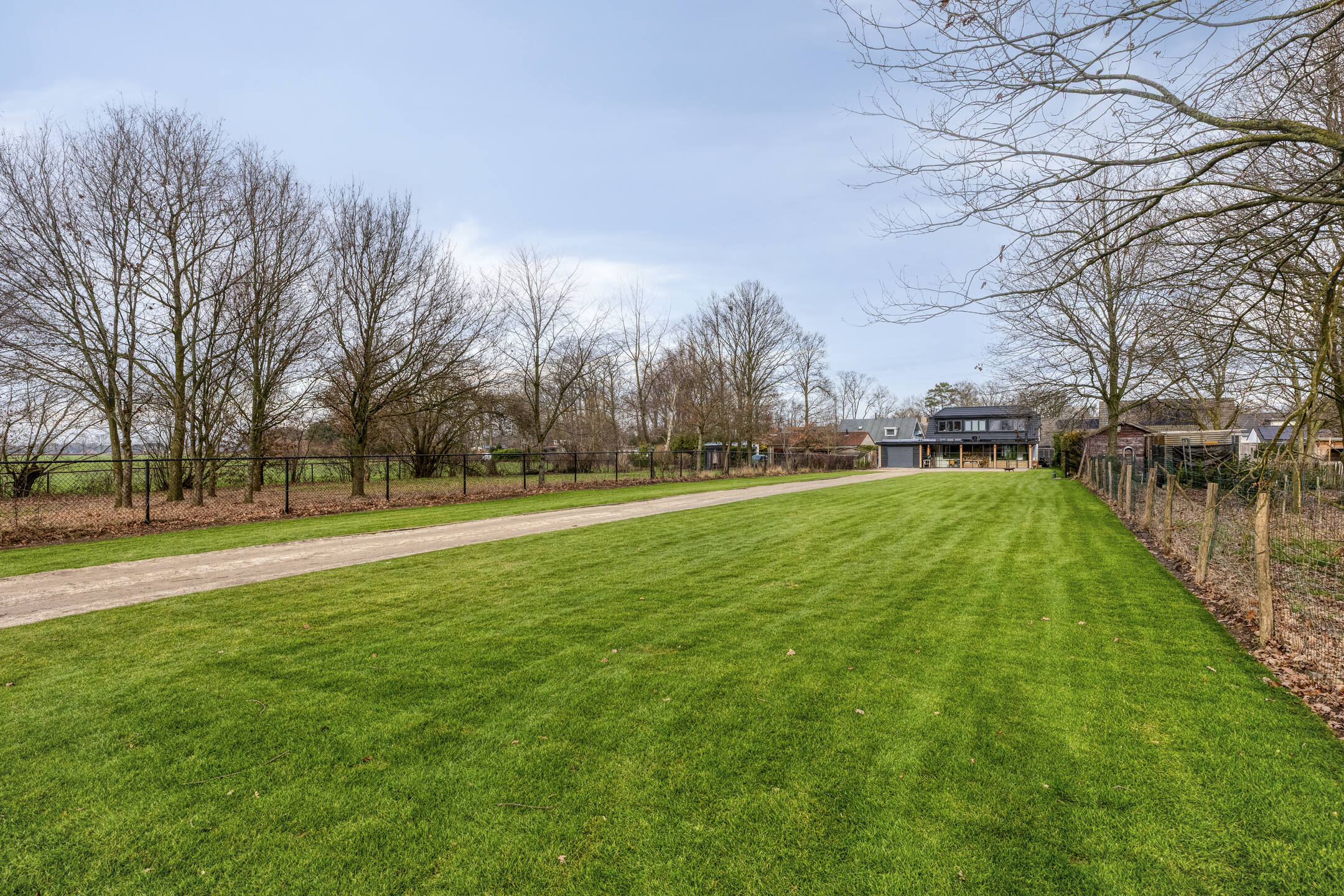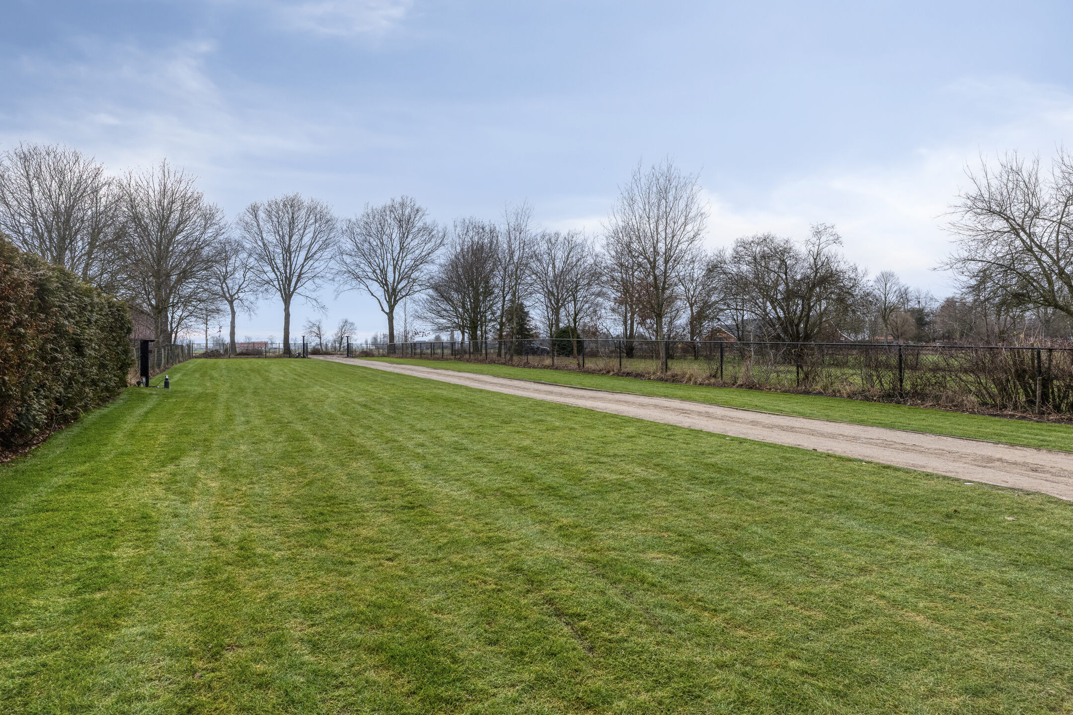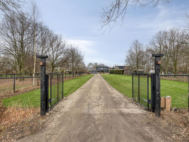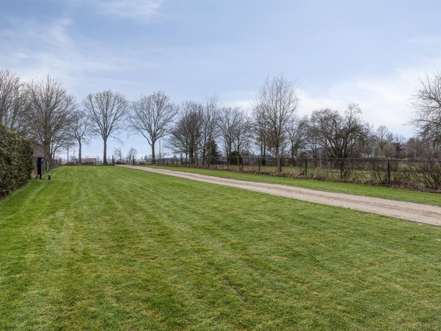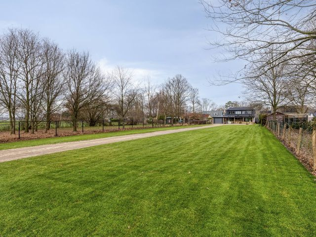 De riante achtertuin is volledig omheind en biedt een perfecte combinatie van gazon en sierlijke bestrating, waardoor het een heerlijke plek is om te ontspannen of te genieten van buitenleven. De poort aan de achterzijde is elektrisch bedienbaar en voorzien van een ringdeurbel, wat extra gemak en veiligheid biedt. De tuin is verder uitgerust met wifi-spots, zodat u ook in de tuin altijd verbonden bent. Dankzij de privacy en het weidse uitzicht voelt het hier echt als buitenleven.