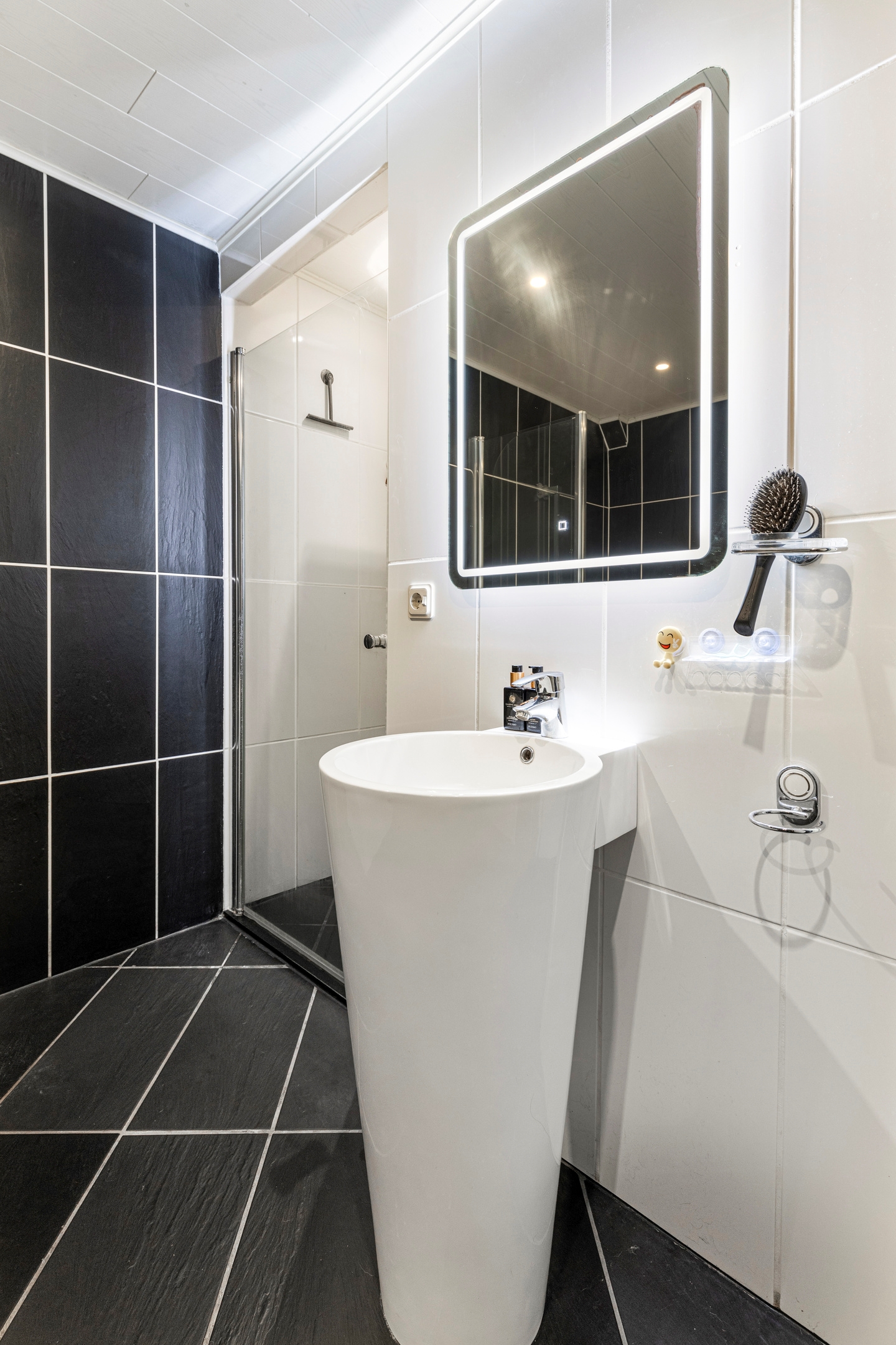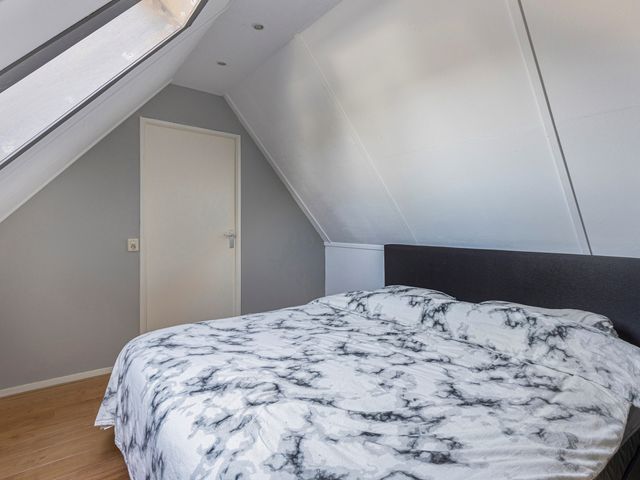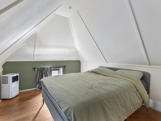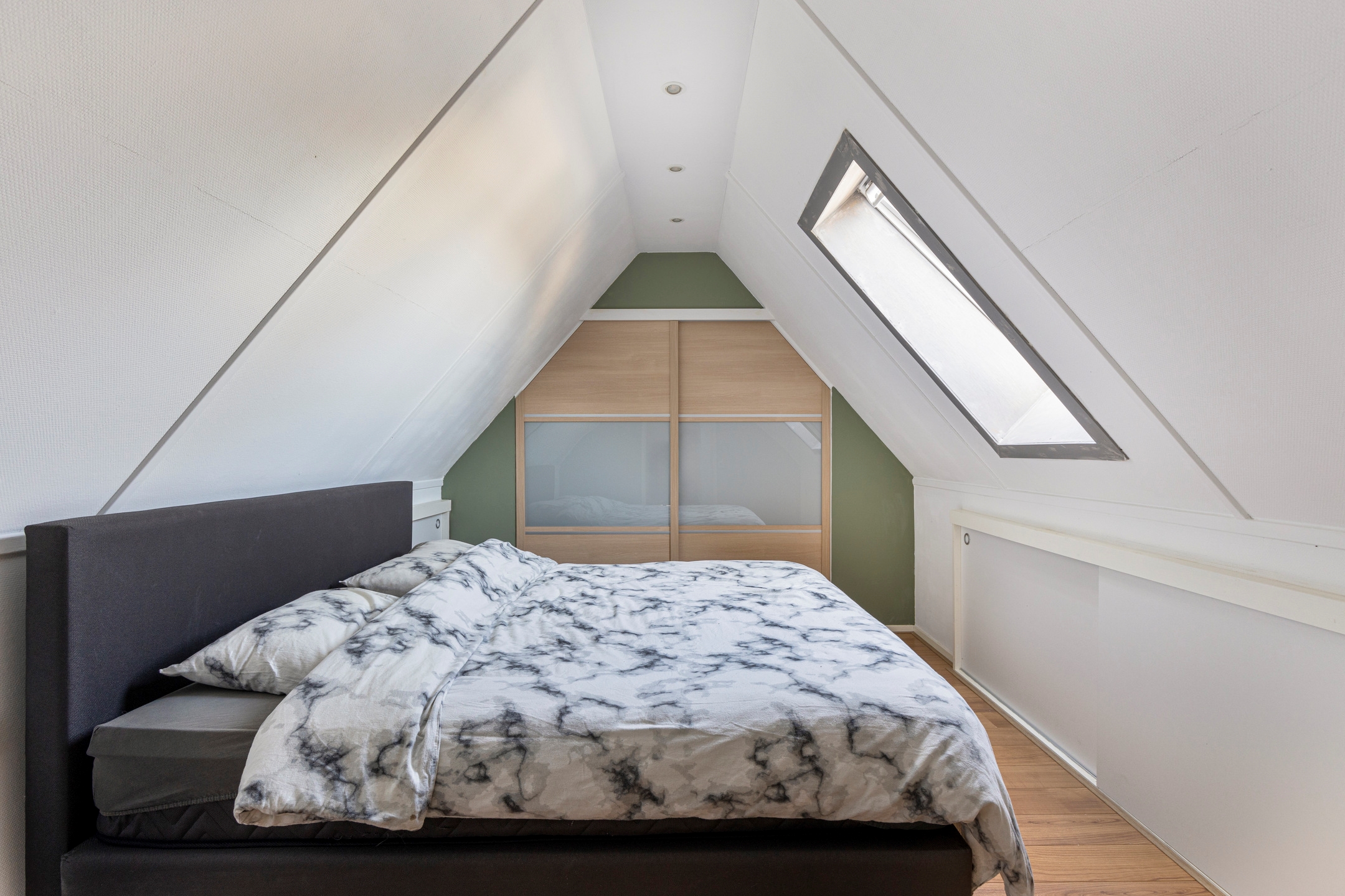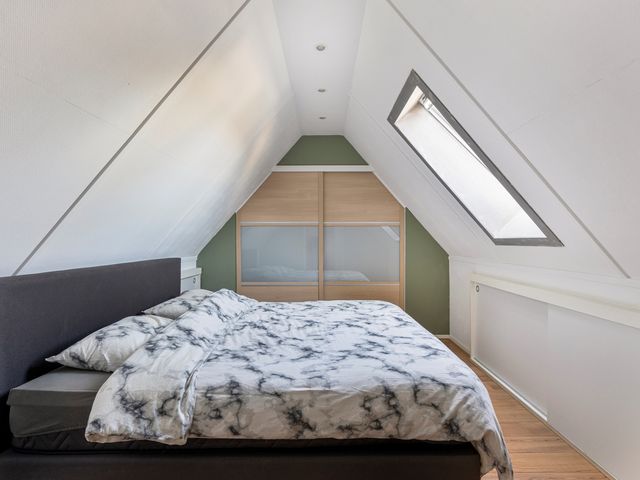 De slaapkamers zijn ruim van afmeting en is voorzien van een laminaatvloer en voldoende bergruimte achter de dakschuinte. De speelse raampartijen en de schuine wandafwerking maken deze kamers tot een sfeervolle ruimtes.