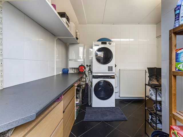 Pluspunt van deze woning is de separaat gelegen bijkeuken. Hier is ruimte voor bijvoorbeeld de was-/droogcombinatie en een extra koelkast. Tevens is de c.v. ketel in deze bijkeuken geïnstalleerd. De plavuizenvloer maakt deze ruimte praktisch in het onderhoud.