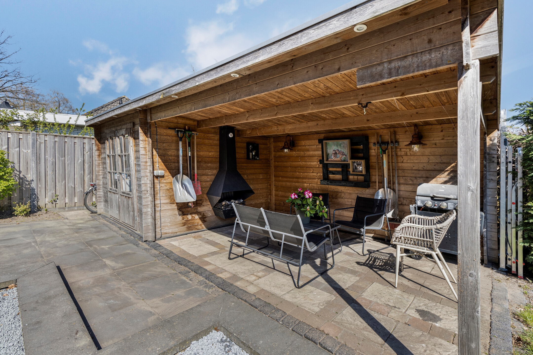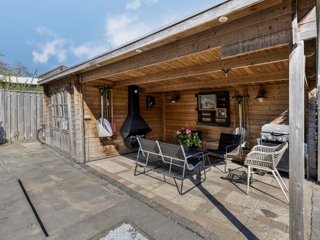 De tuin is voorzien van een terras, gazon, vaste planten, een sfeervolle overkapping, buitenkraan en een tuinhuis. In deze tuin geniet je van zon, rust en alles wat de 4 seizoenen aan kleur hebben te bieden.