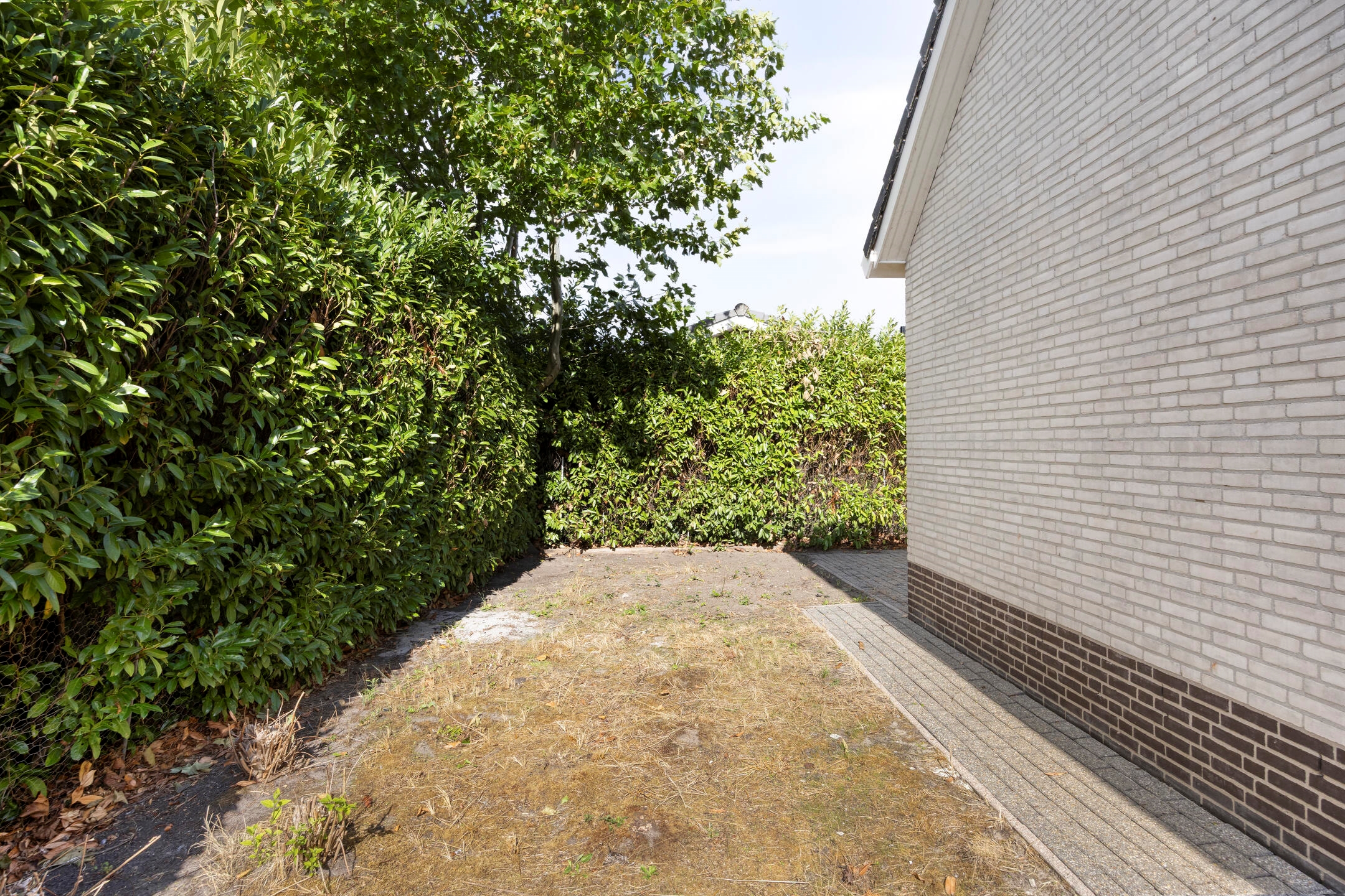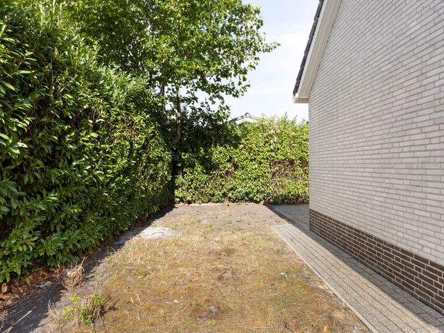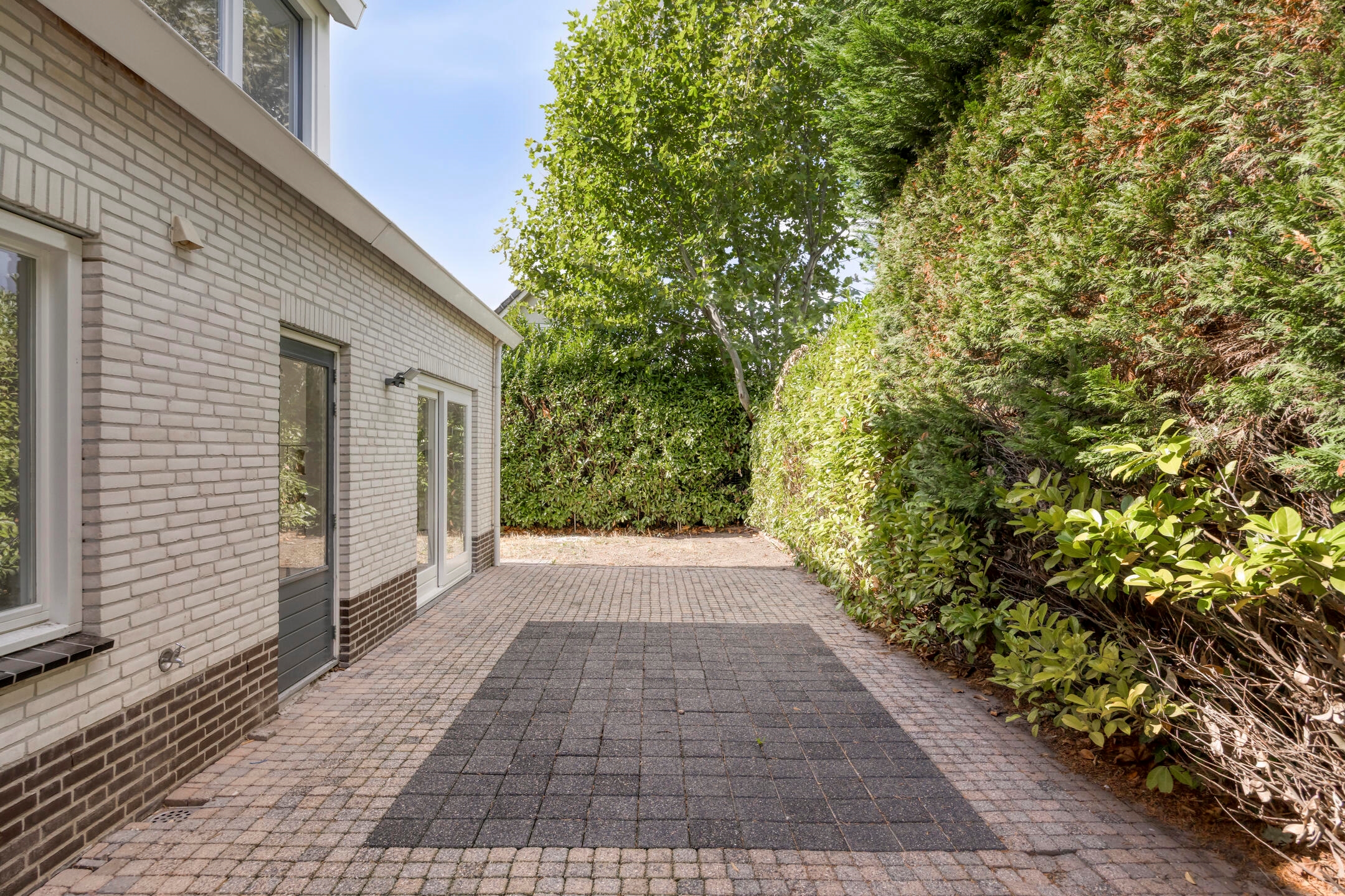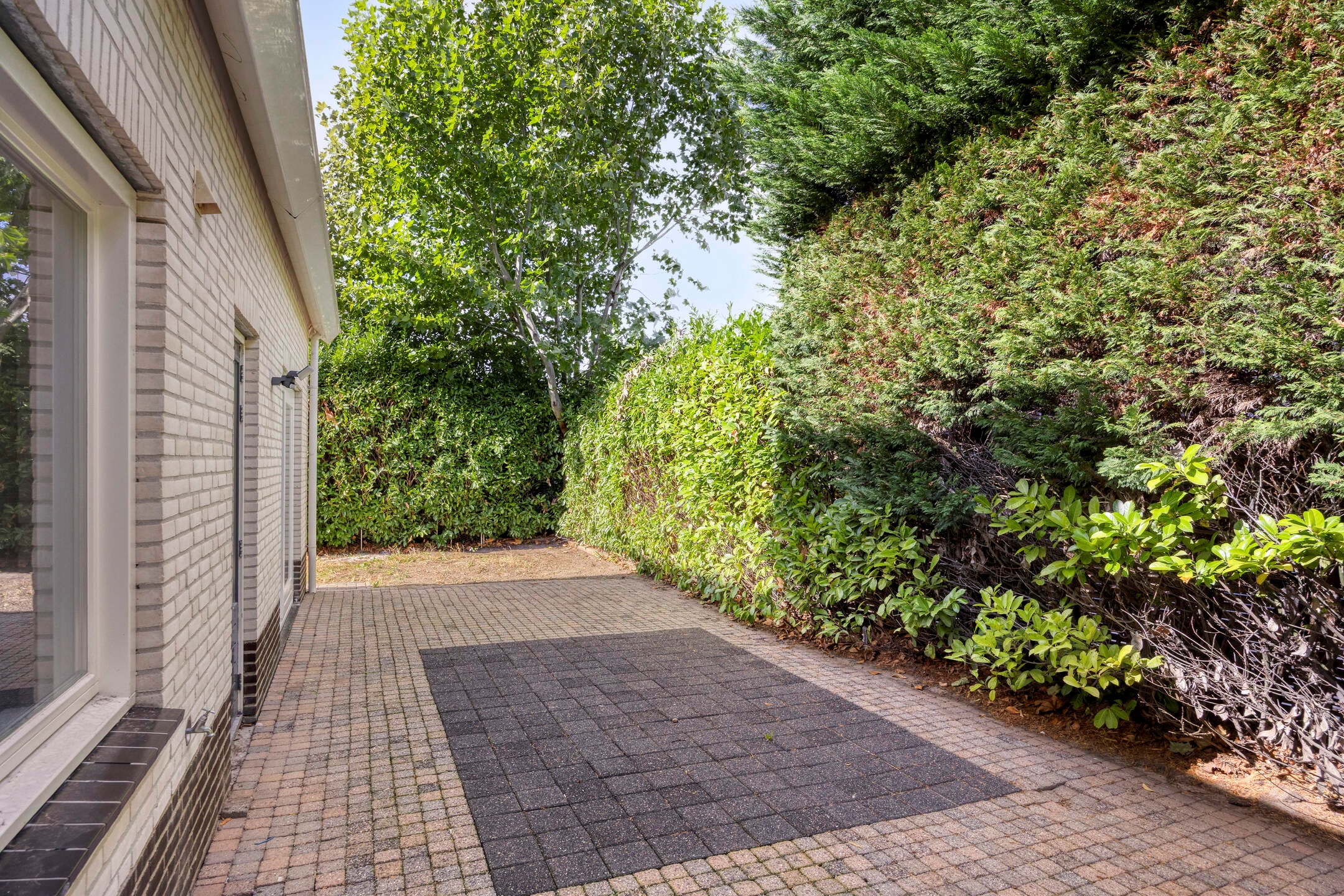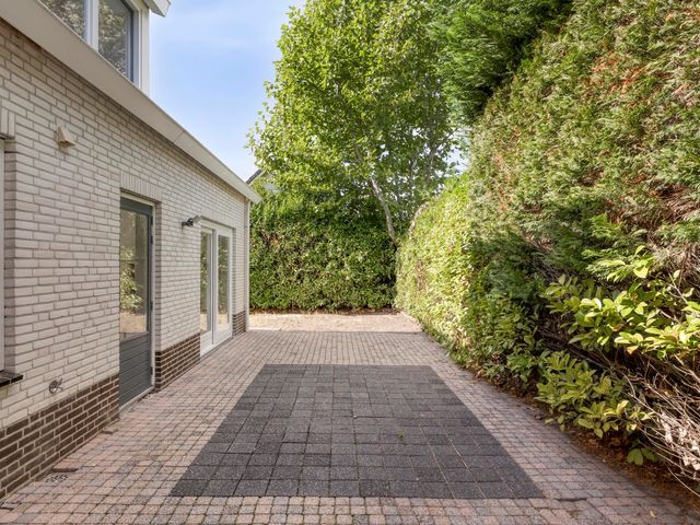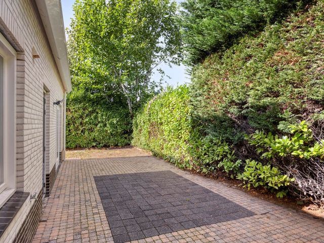 De tuin biedt veel privacy en is voorzien van sierbestrating.