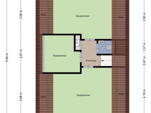 De gebruikte meetinstructie volgt de NEN2580-norm. Deze methode biedt een uniforme manier om het gebruiksoppervlak te benaderen. Door variaties in interpretatie, afronding of meetbeperkingen kunnen er toch afwijkingen ontstaan. De feitelijke situatie in het huis is leidend. De verstrekte oppervlakte-informatie is indicatief en mag niet als exact worden beschouwd. “Wat je ziet is wat je koopt” blijft het uitgangspunt.