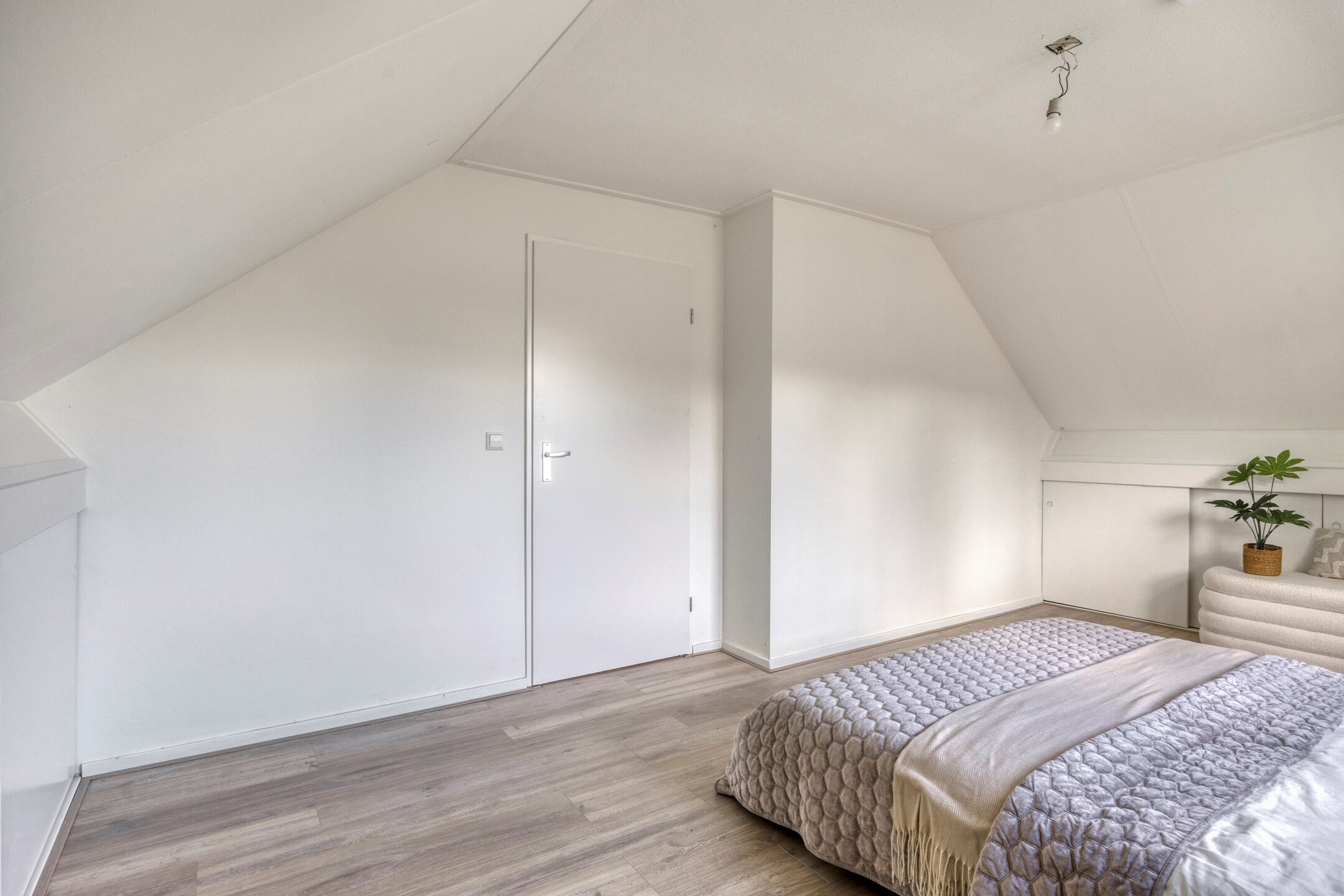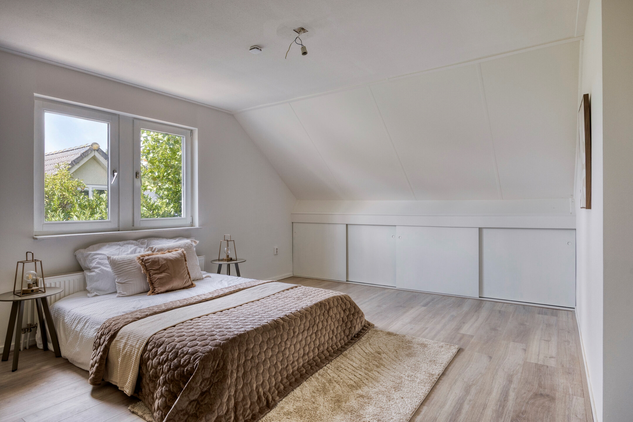 De kasten onder de dakschuinte zorgen voor voldoende opbergruimte.