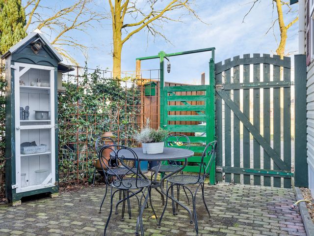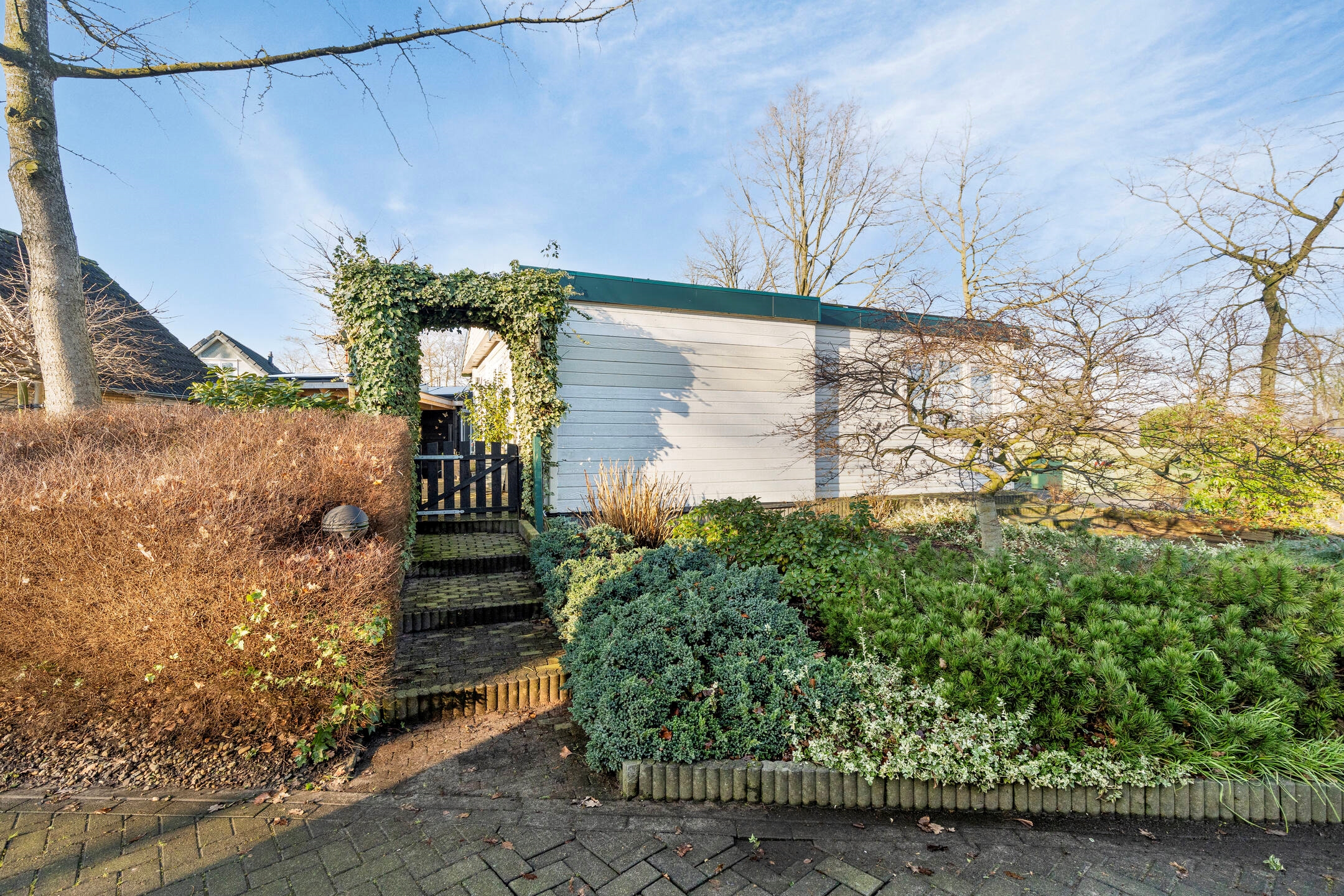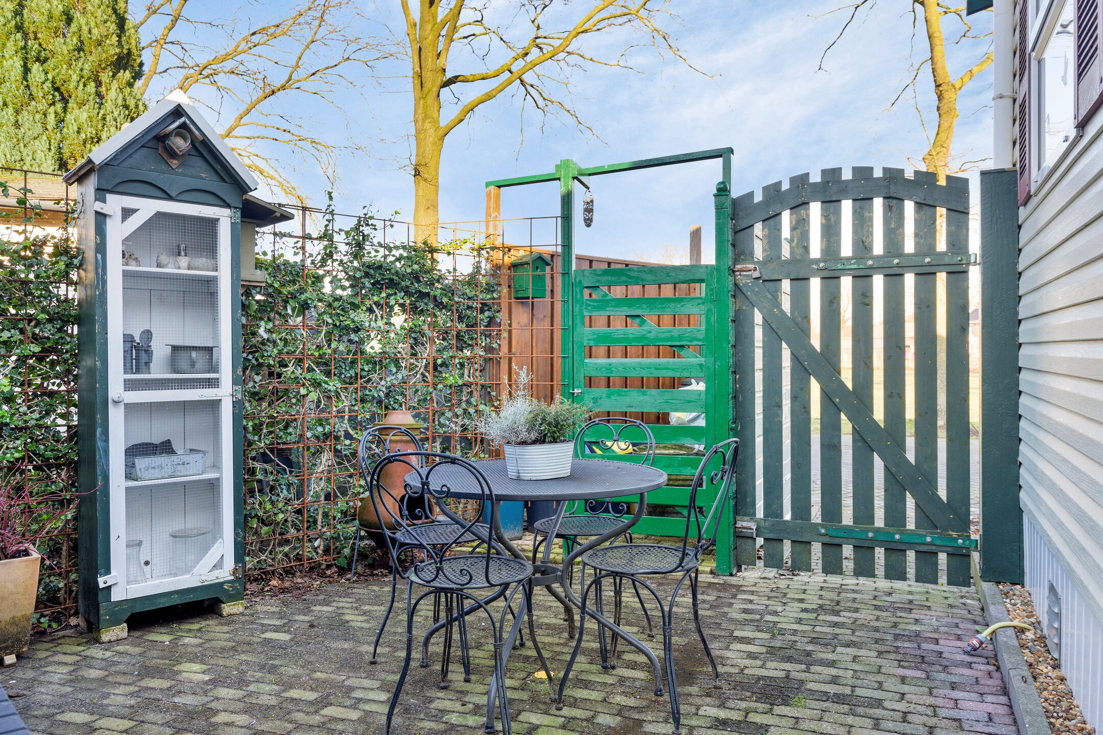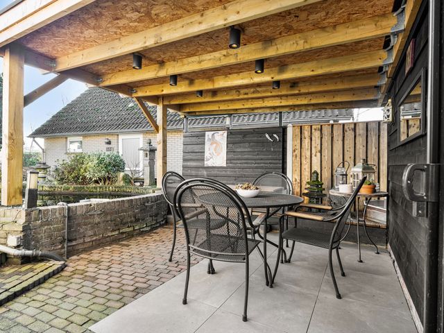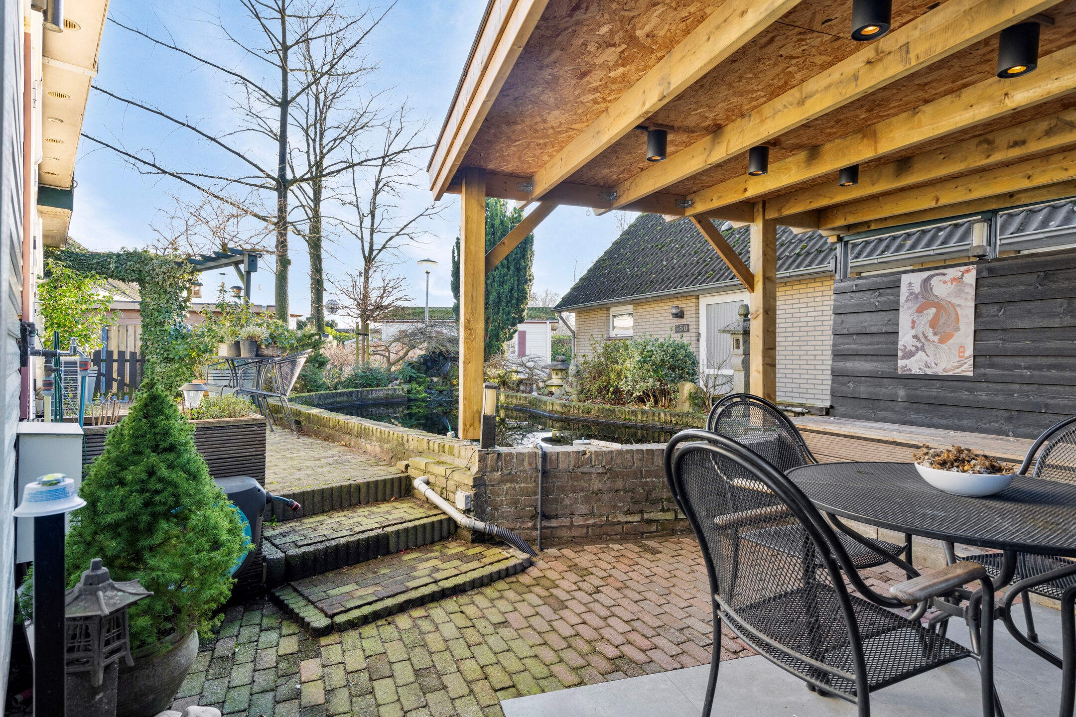 De tuin biedt voldoende privacy en is voorzien van sierbestrating, diverse vaste planten en een vijver. De sfeervolle overkapping is een heerlijk plekje om te genieten van de tuin. De twee bergingen zijn ideale ruimtes voor bijvoorbeeld het opbergen van uw tuinspullen. Een berging is voorzien van een praktisch keukenblok.