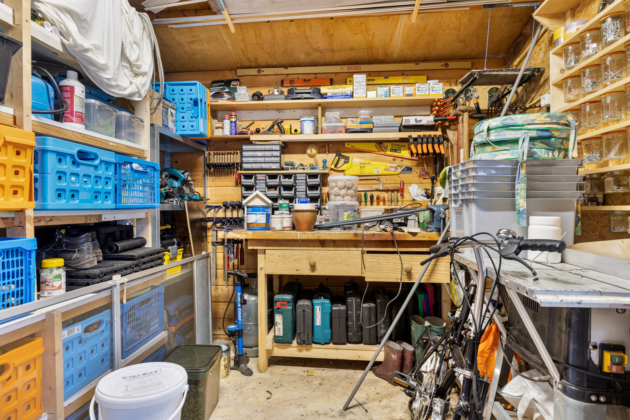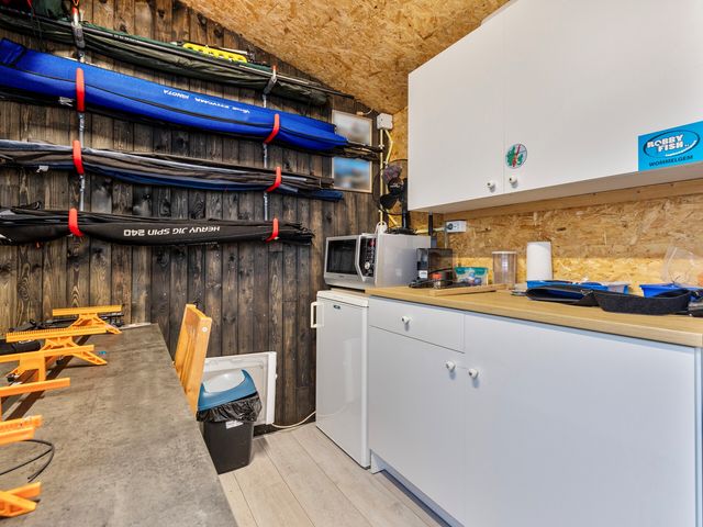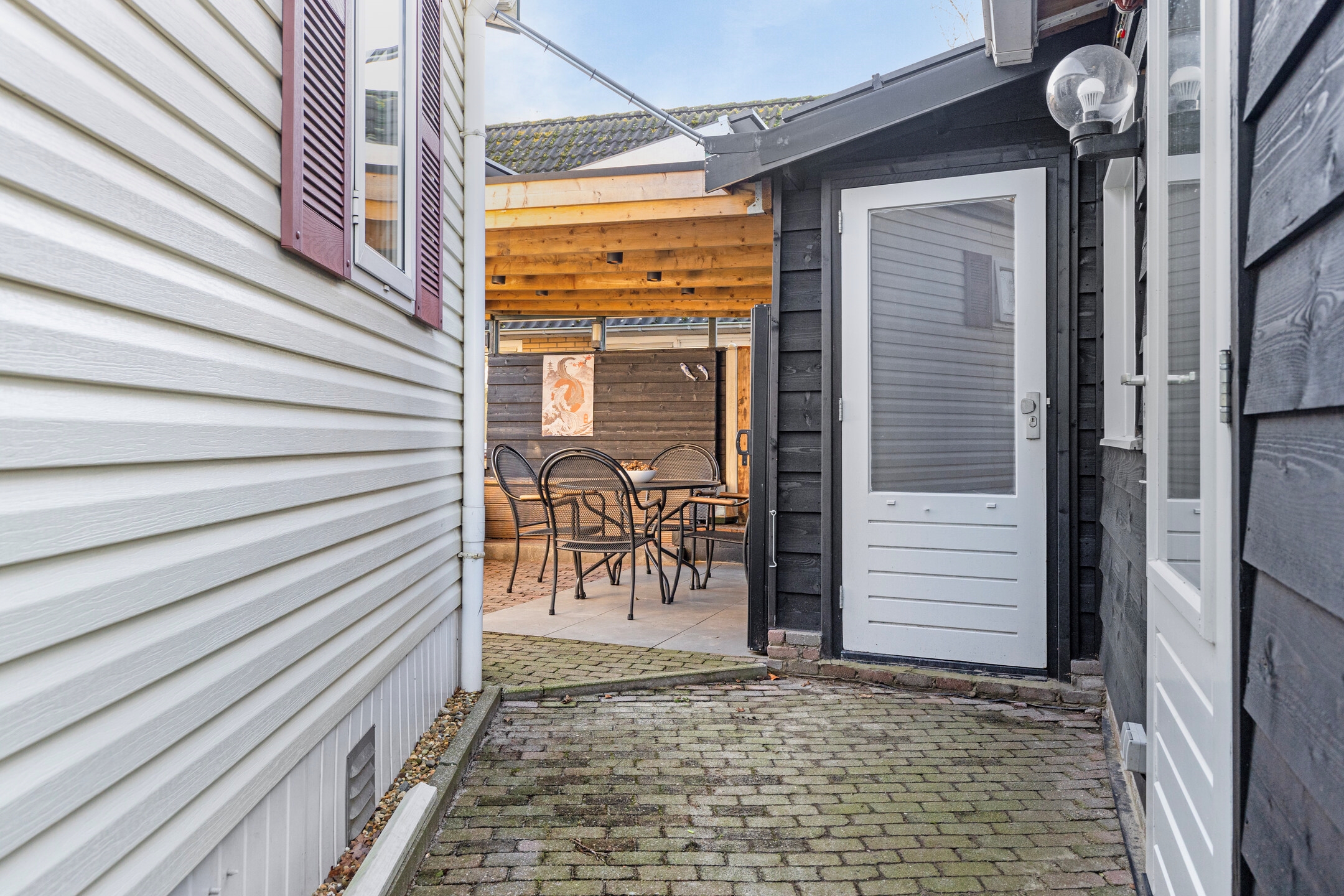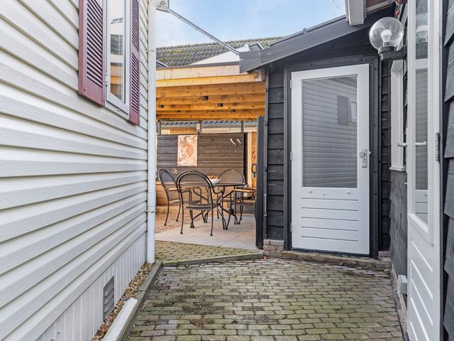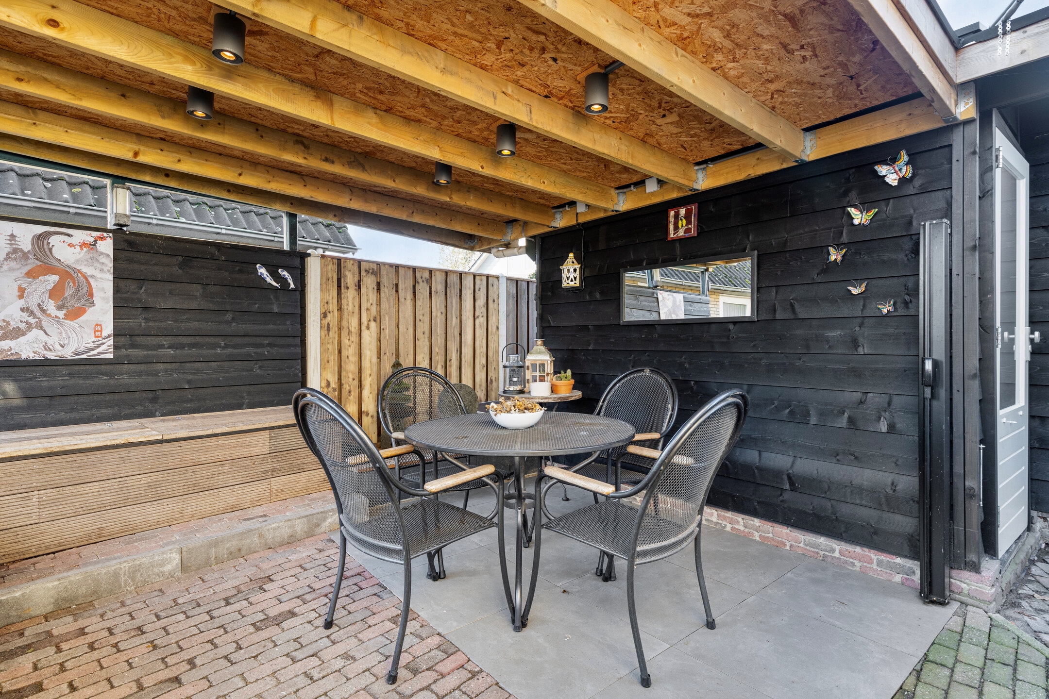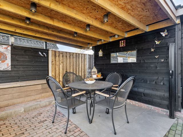 De tuin biedt voldoende privacy en is voorzien van sierbestrating, diverse vaste planten en een vijver. De sfeervolle overkapping is een heerlijk plekje om te genieten van de tuin. De twee bergingen zijn ideale ruimtes voor bijvoorbeeld het opbergen van uw tuinspullen. Een berging is voorzien van een praktisch keukenblok.