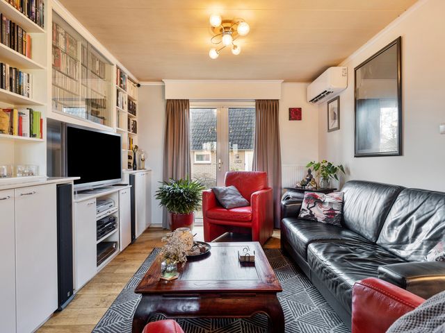 De woonkamer is er een met veel lichtinval door de brede raampartij met openslaande tuindeuren. De woonkamer is afgewerkt met een laminaatvloer en voorzien van airconditioning die koelt en verwarmd. Door middel van de openslaande tuindeuren heeft u toegang tot de tuin.