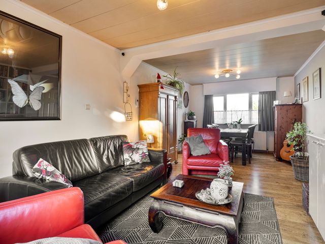 - De lichte woonkamer heeft openslaande tuindeuren naar de tuin