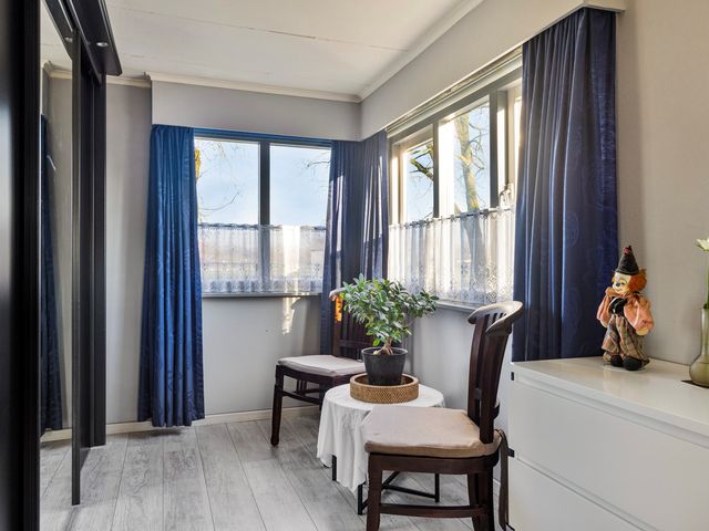 De ruime slaapkamer is een volwaardige kamer met een laminaatvloer en een geeft toegang tot een walk in closet. Tevens is de slaapkamer voorzien van een airconditioning die koelt en verwarmd.