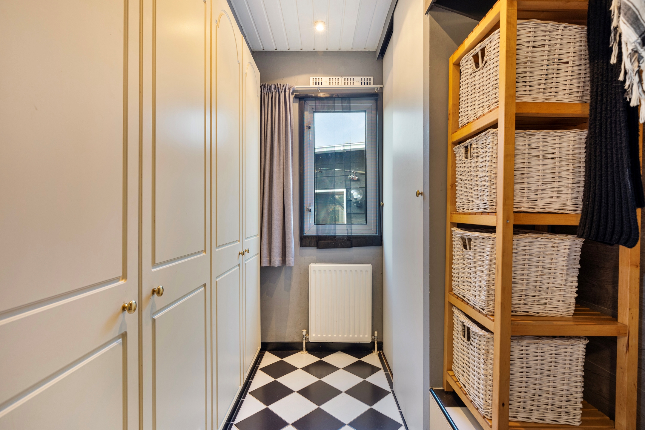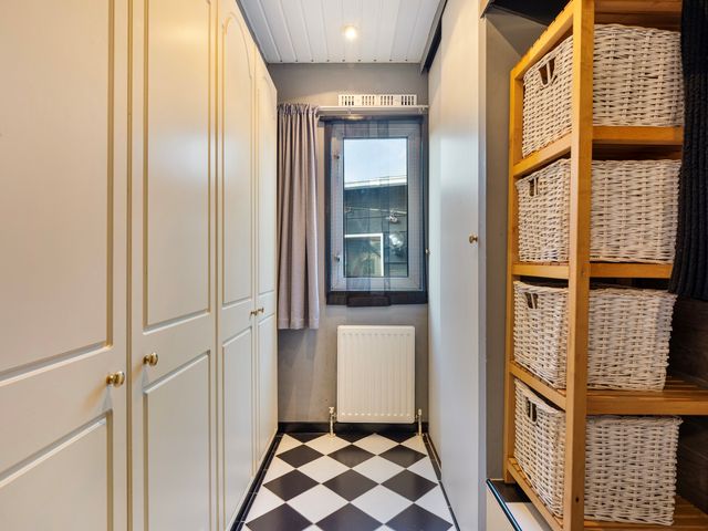 De ontvangsthal geeft toegang tot de keuken, badkamer, toilet en de opbergruimte.