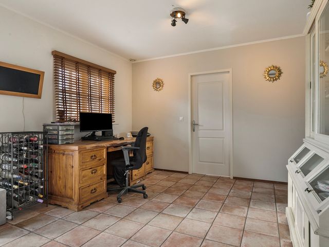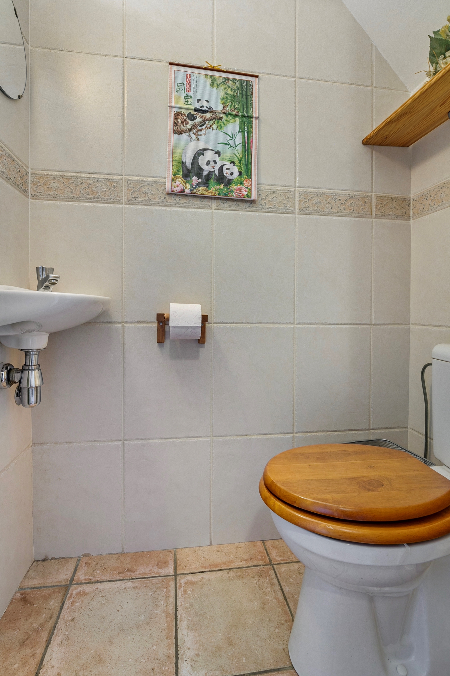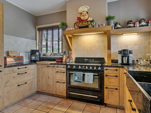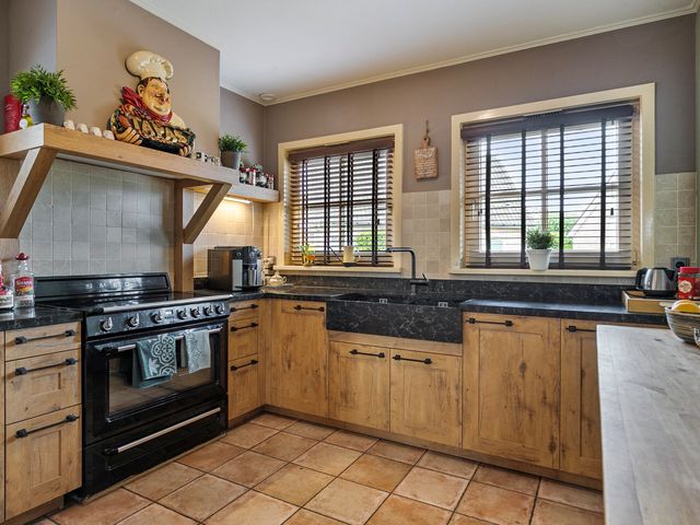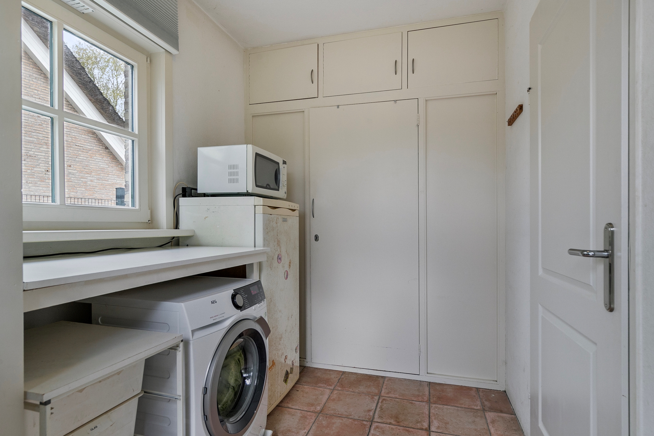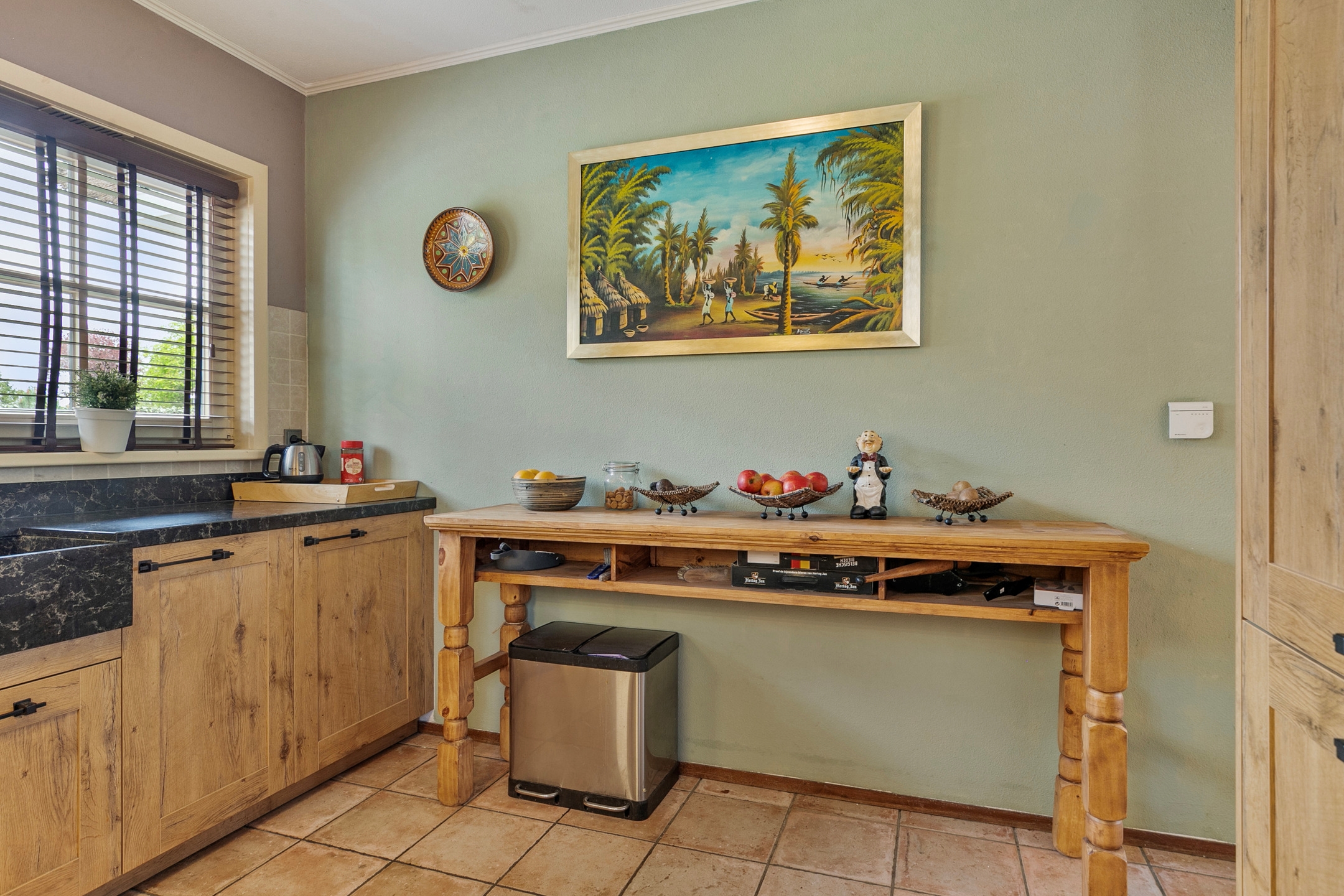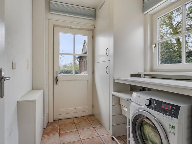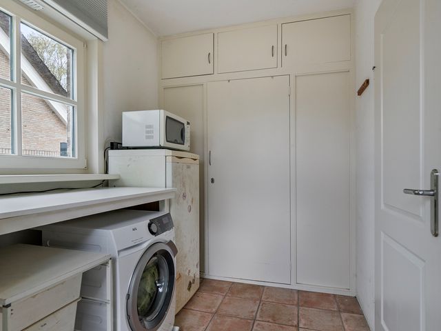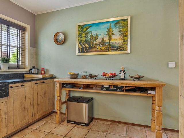 Pluspunt van dit pareltje op Patersven is de separaat gelegen bijkeuken met toegang tot de tuin. Hier is een inbouwkast geplaatst en is tevens ruimte voor bijvoorbeeld de wasmachine en droger, c.v.-installatie is netjes weggewerkt. De plavuizenvloer maakt deze ruimte praktisch in het onderhoud.