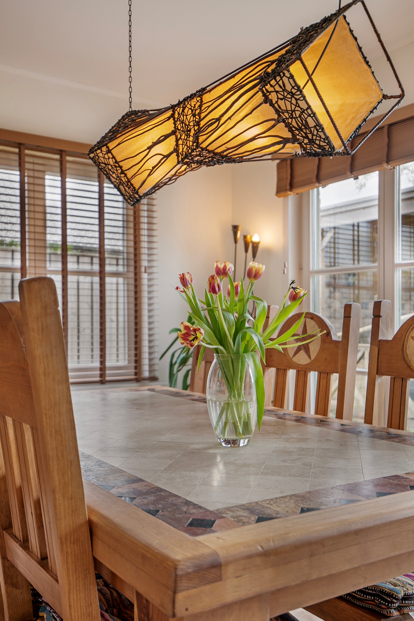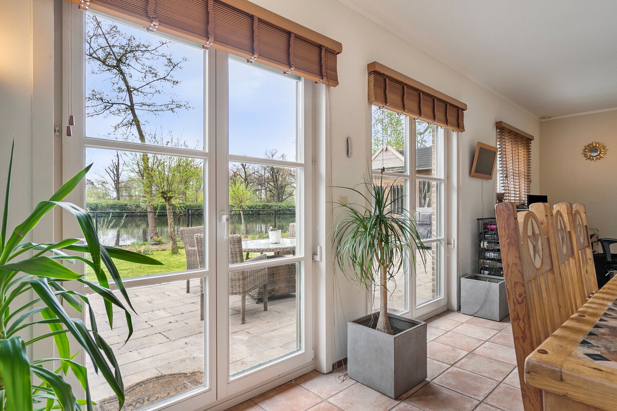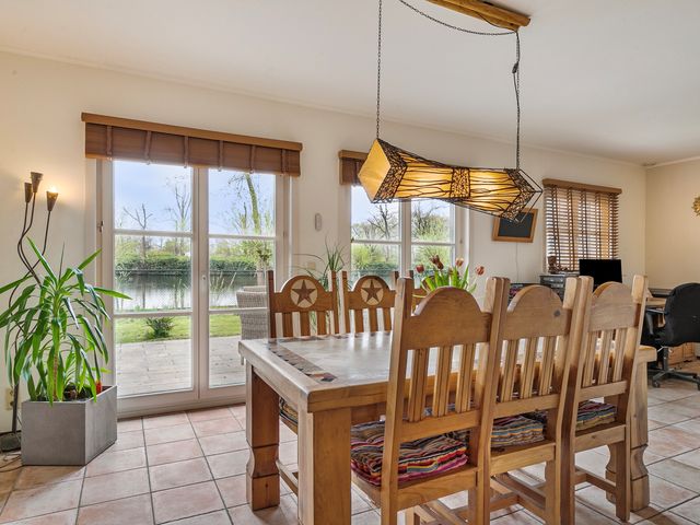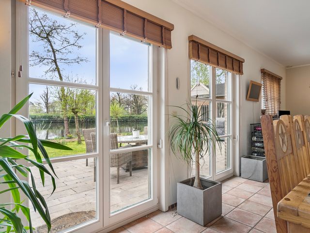 Licht, ruimte en uitzicht! De L-vormige woonkamer heeft het! Meerdere raampartijen, openslaande tuindeuren, privacy en een schitterend en vrij uitzicht over het ven! Ieder seizoen is het hier genieten van wat de natuur te beiden heeft, hier kom je tot rust 365 dagen per jaar! De openslaande tuindeuren komen uit op het aangrenzende terras en tuin.