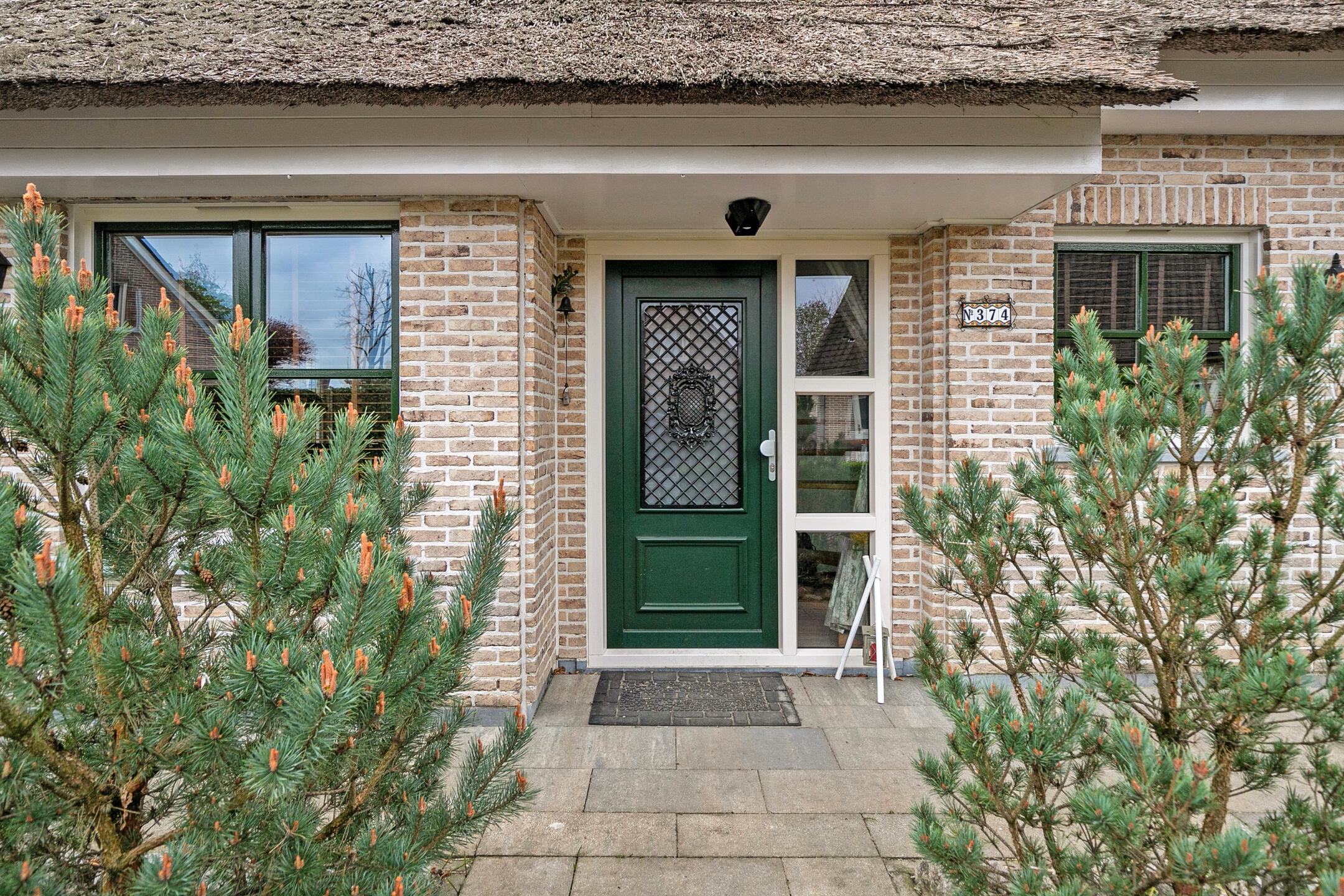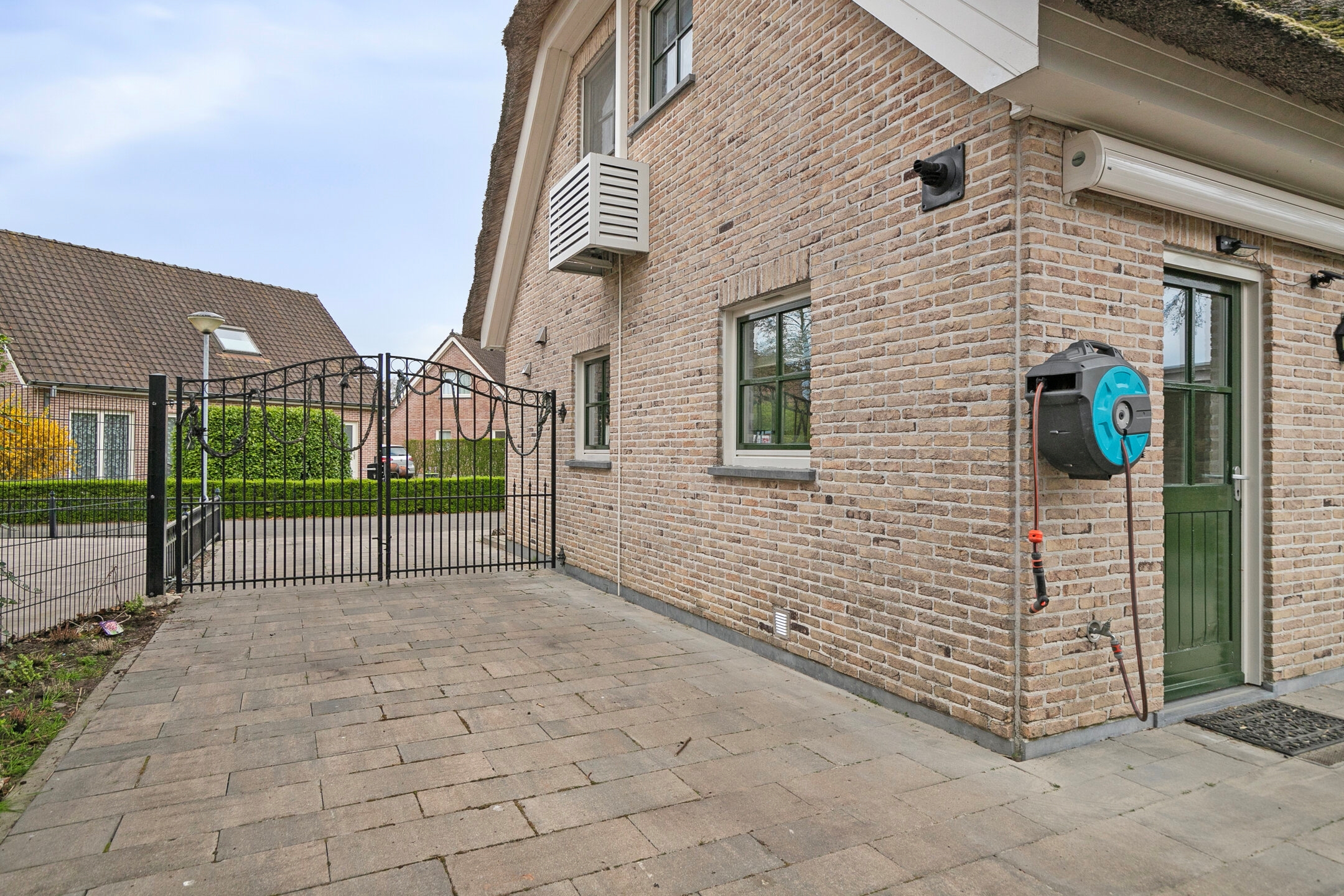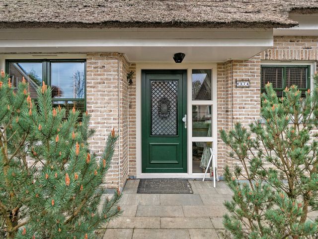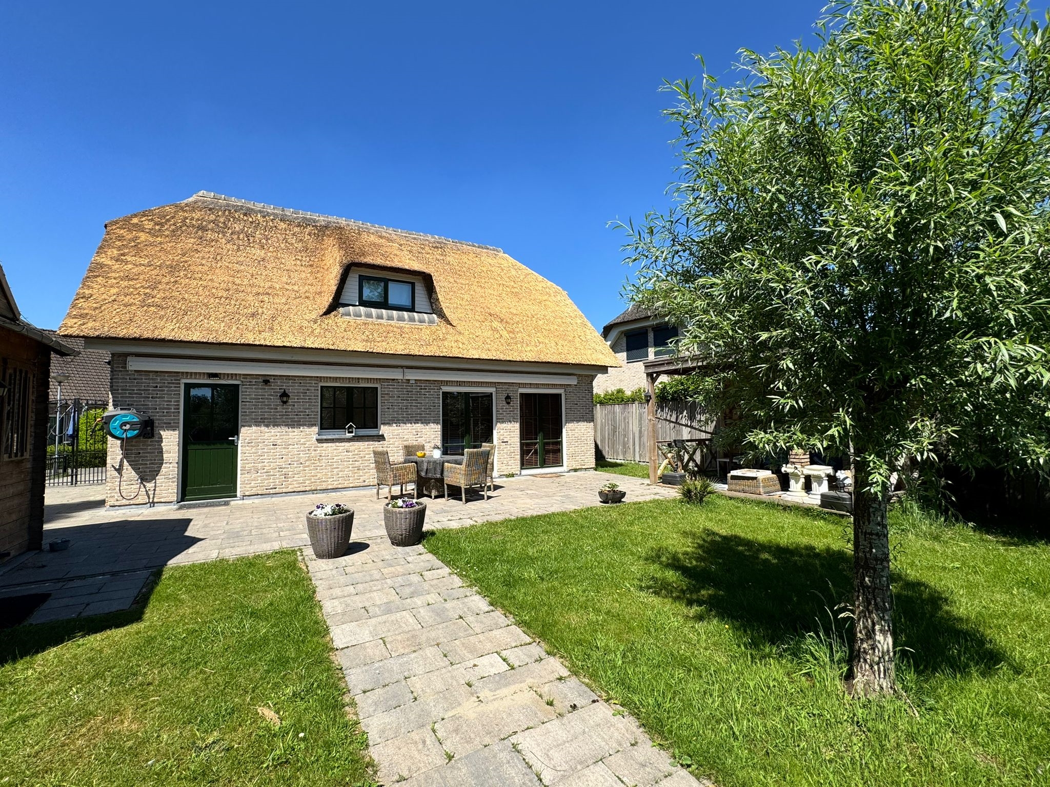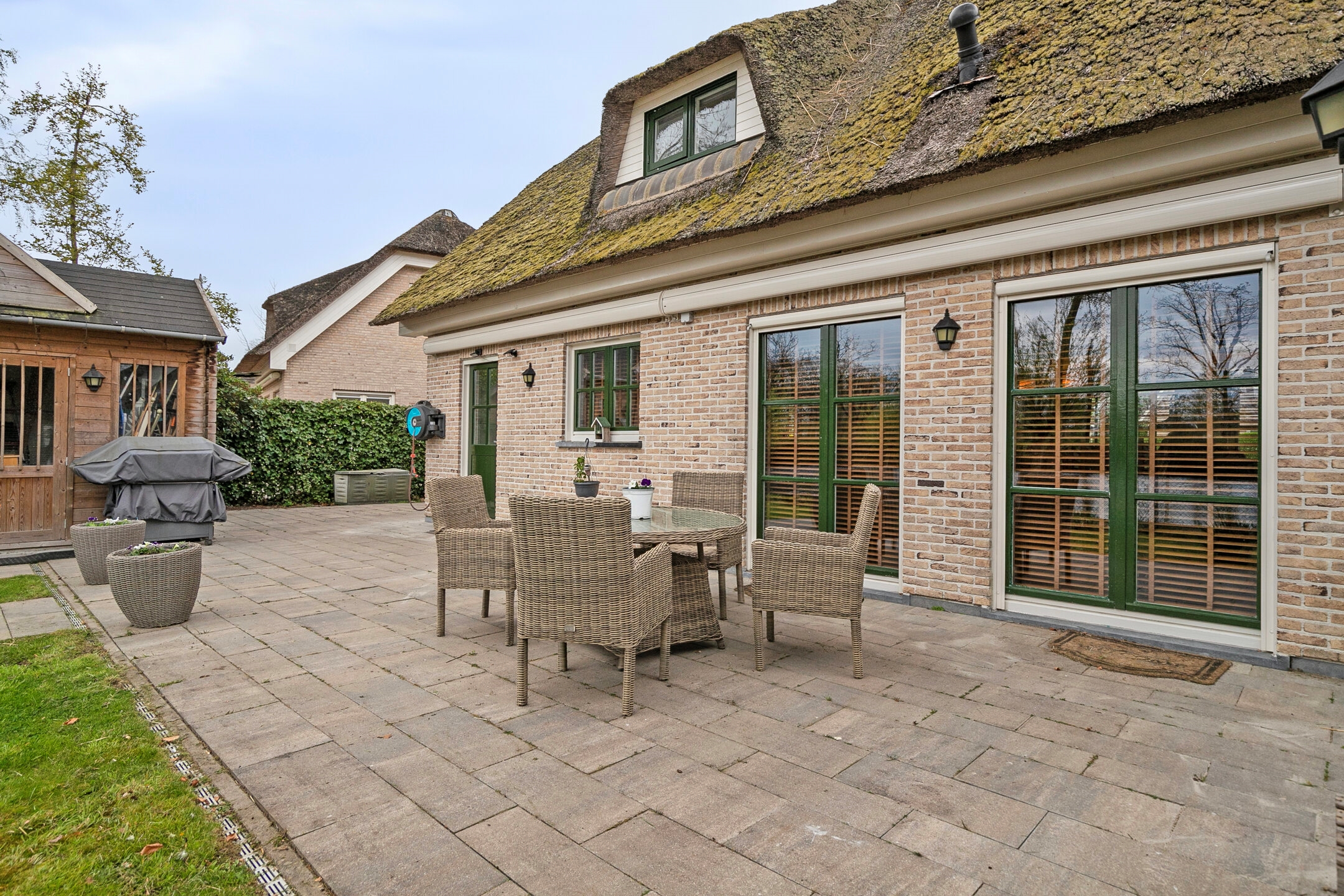 De keurig aangelegde tuin met een weids en vrij uitzicht over het ven is een oase van rust. Met een verzorgd gazon, een zonnig terras, een sfeervolle overkapping en een ruim tuinhuis is dit een plek om in alle jaargetijden volop te genieten van het buitenleven.