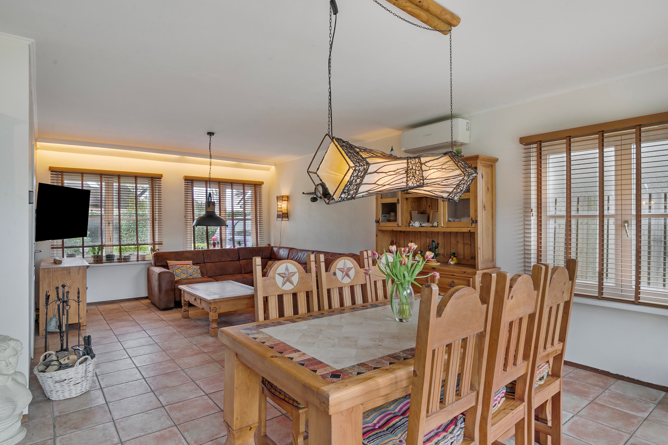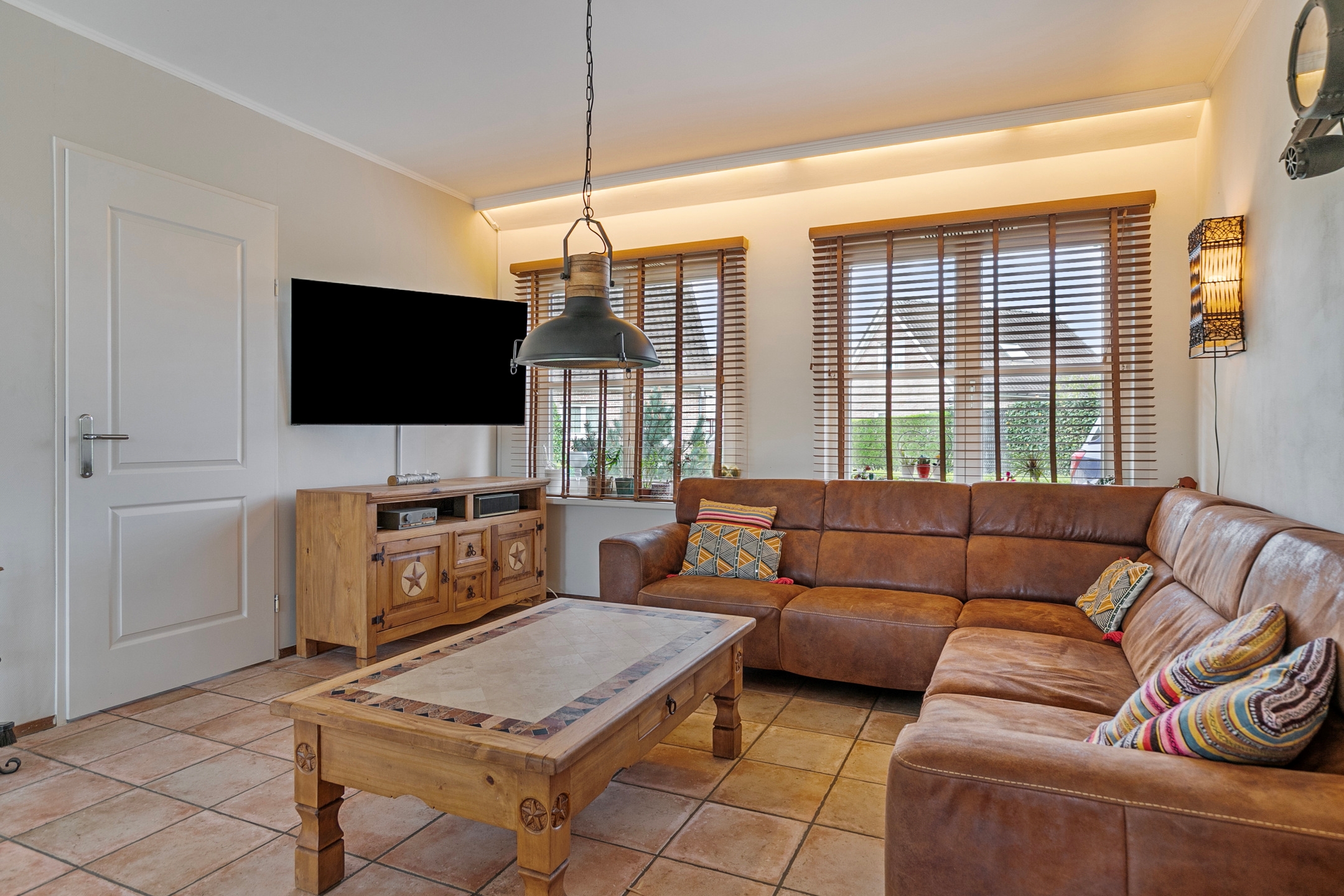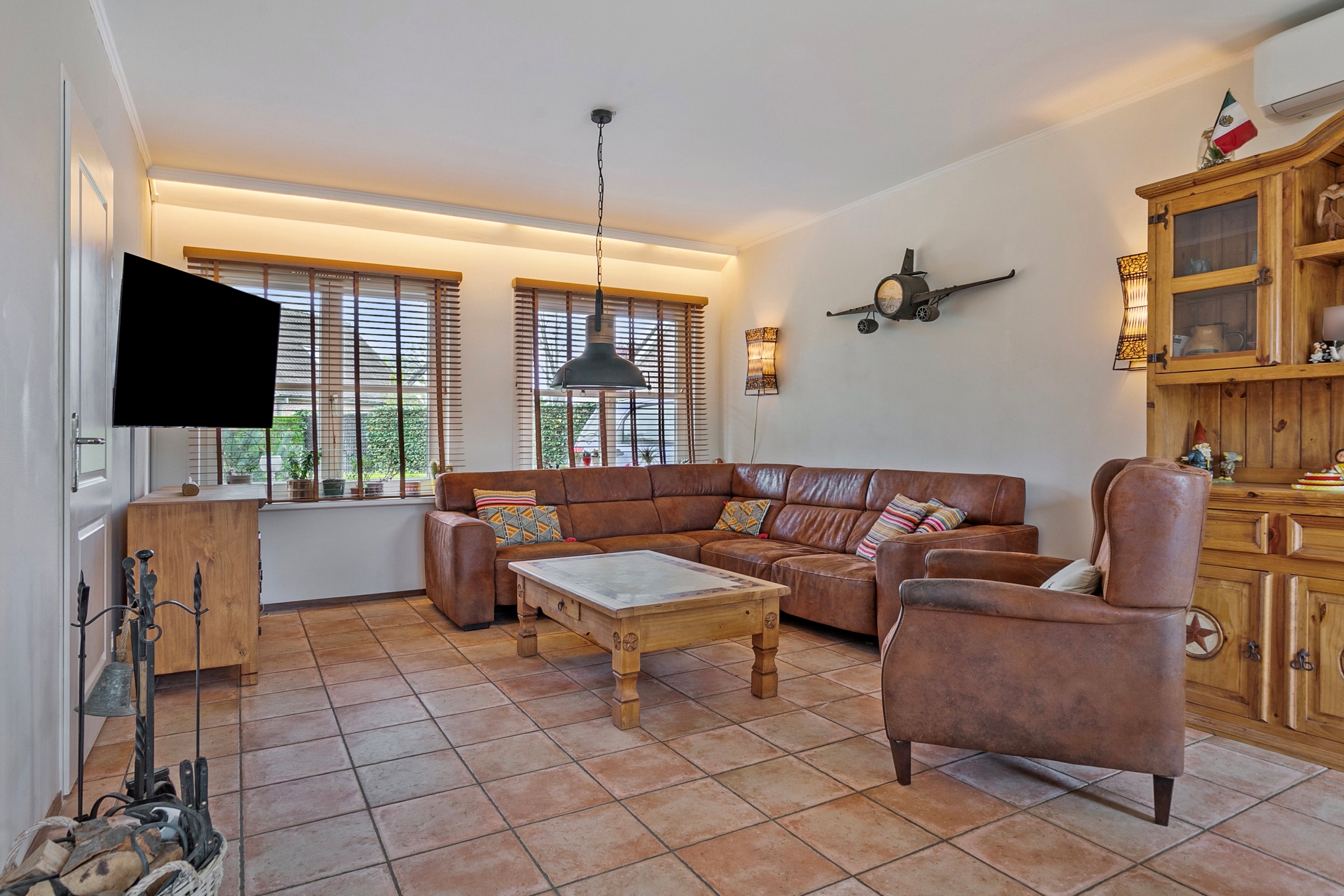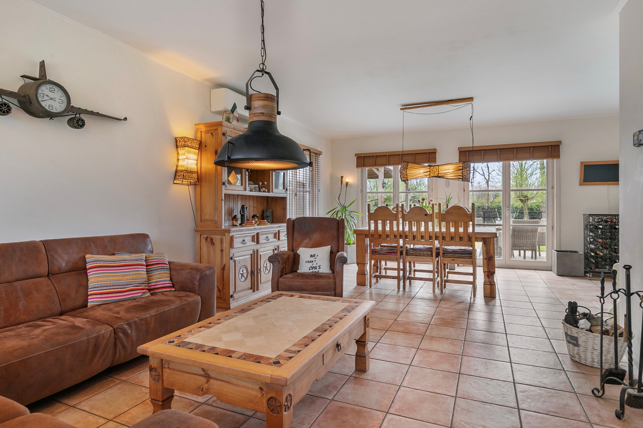 - Royale woonkamer met meerdere raampartijen en openslaande deuren naar de tuin