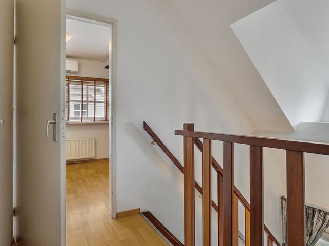 De hardhouten trap in de ontvangsthal komt uit op de overloop van de 1e verdieping met 3 volwaardige slaapkamers en de badkamer.