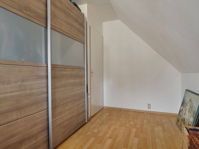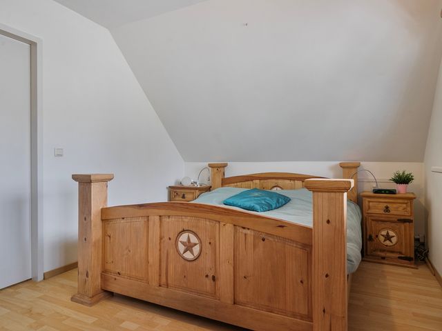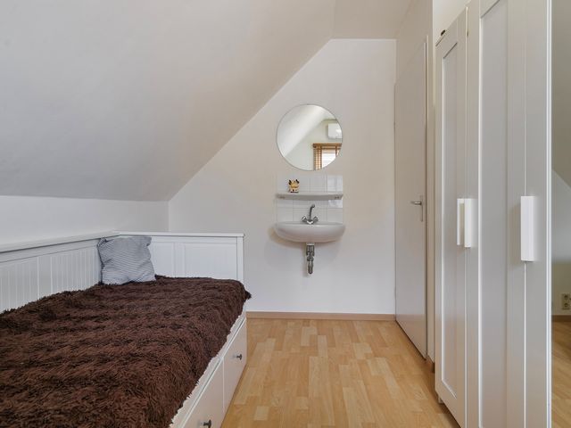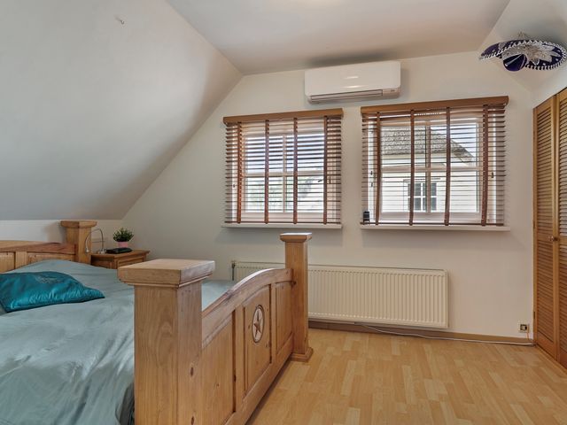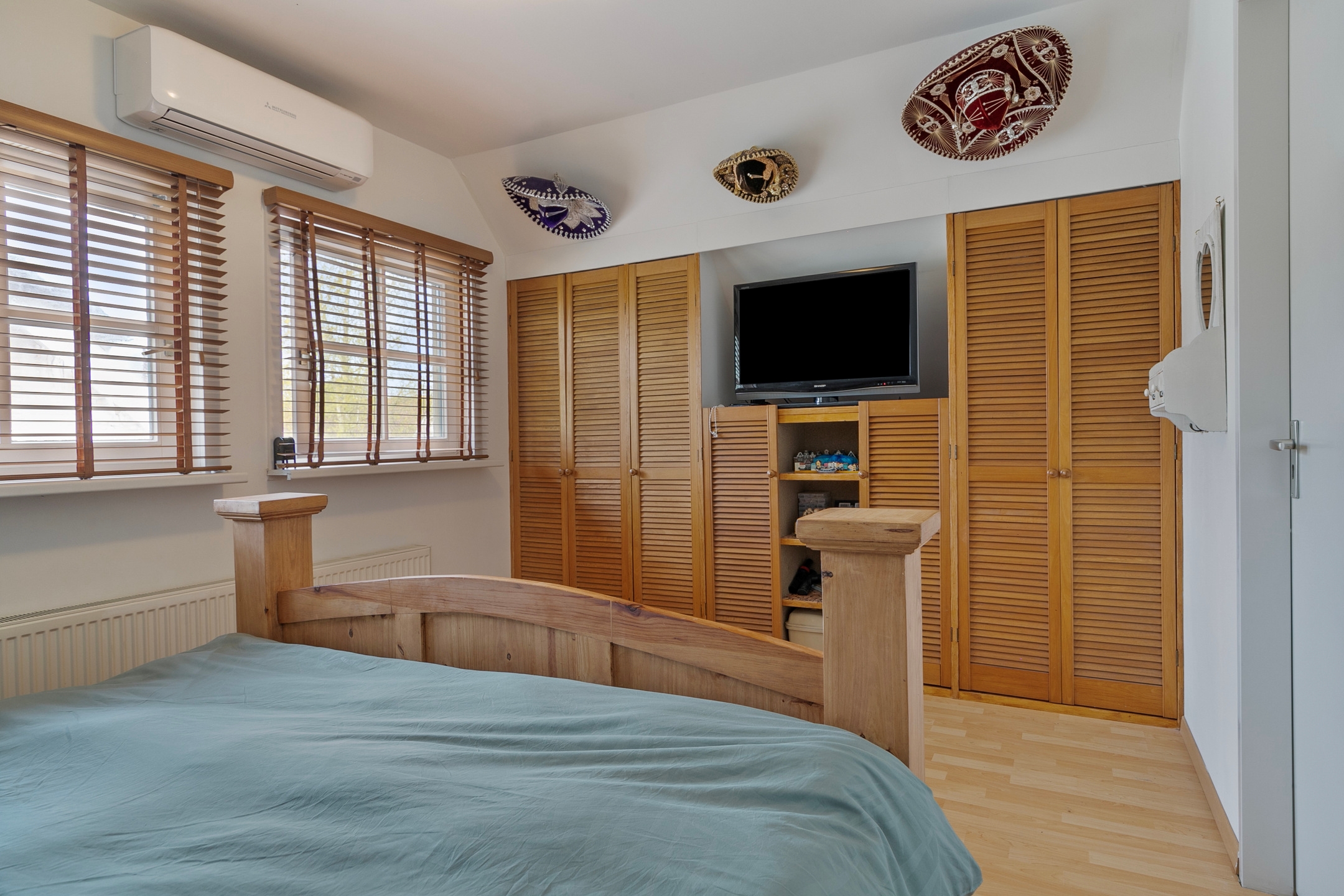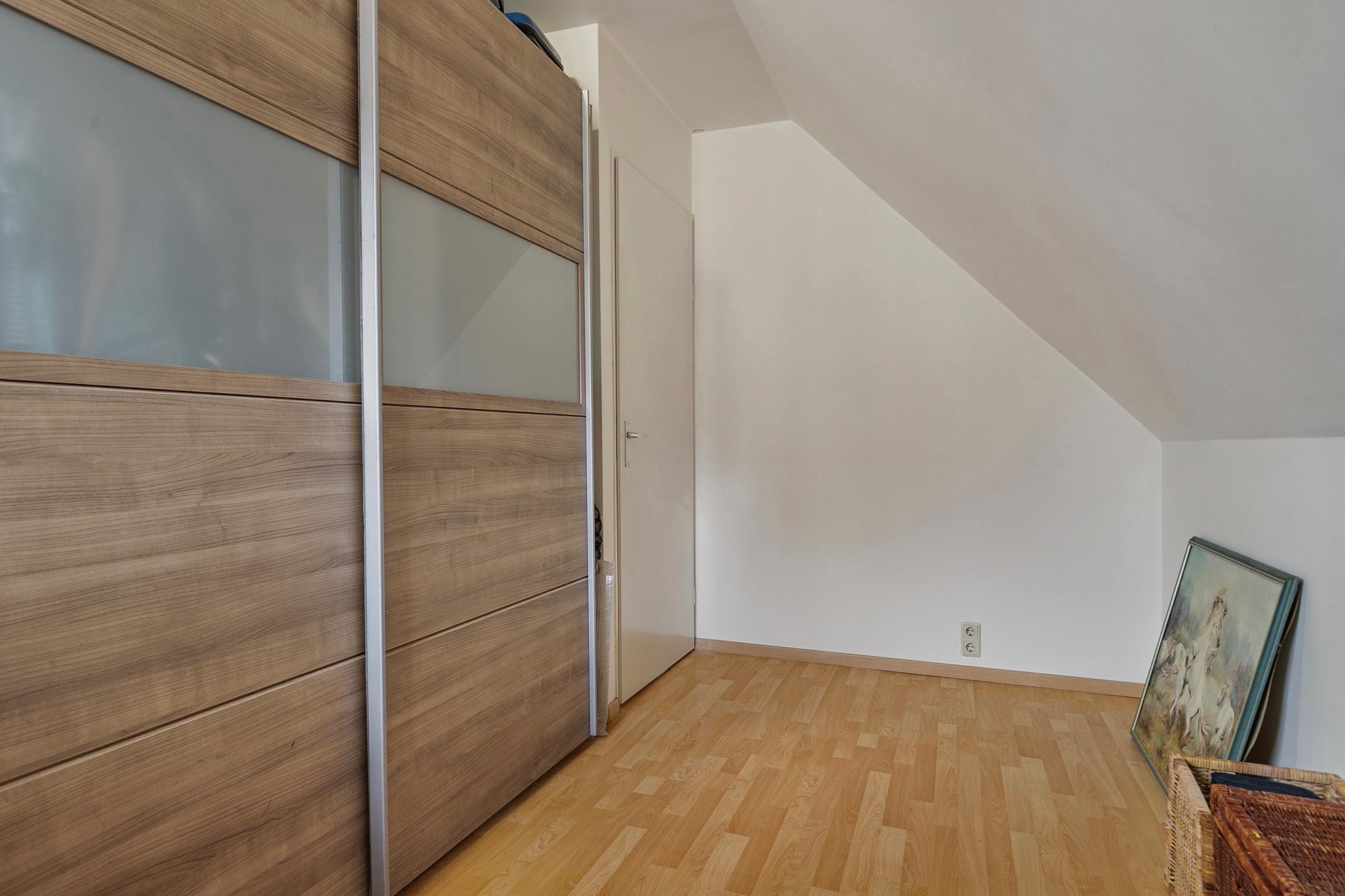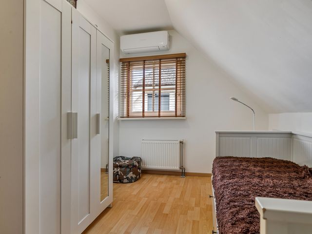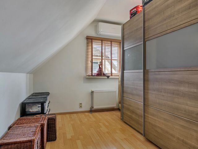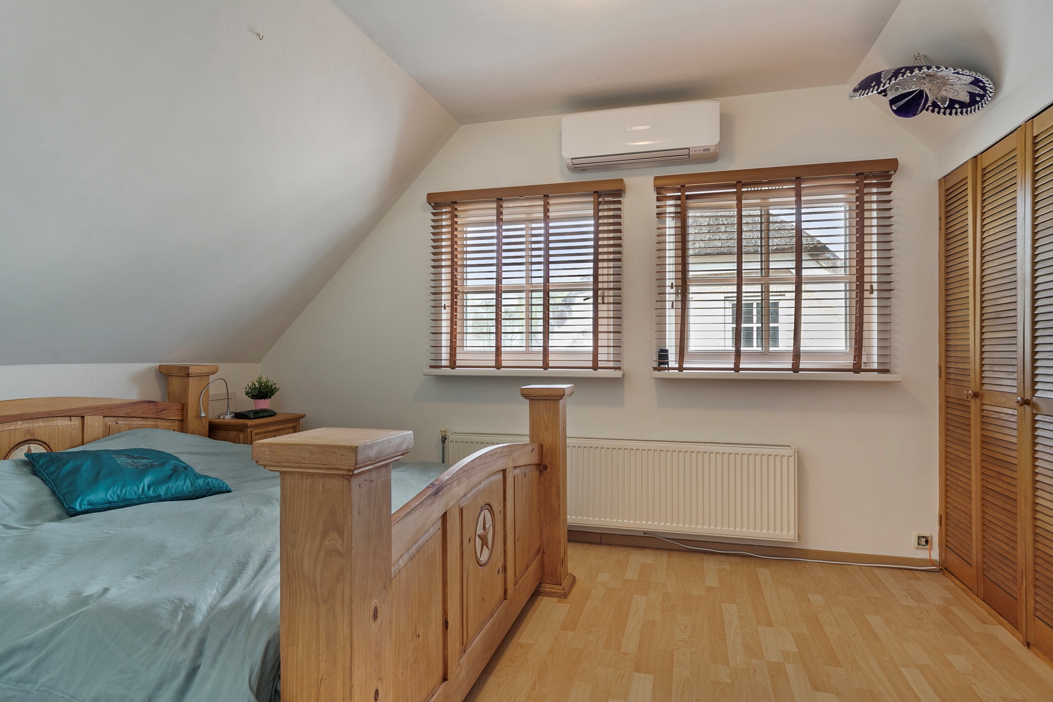 De slaapkamers zijn ruim van afmeting en is voorzien van een laminaatvloer en voldoende bergruimte achter de dakschuinte. De speelse raampartijen en de schuine wandafwerking maken deze kamers tot een sfeervolle ruimtes.
