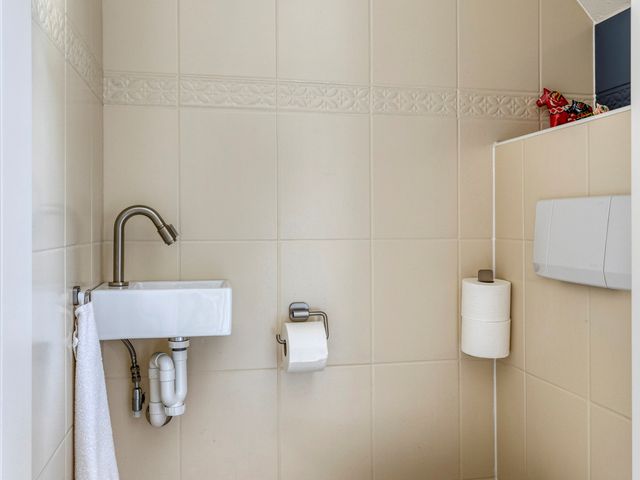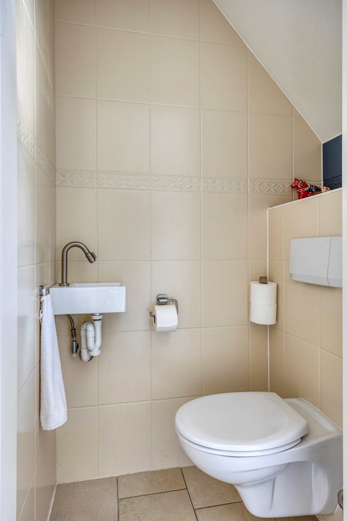 Het toilet is geheel betegeld en voorzien van een mechanische afzuiging.