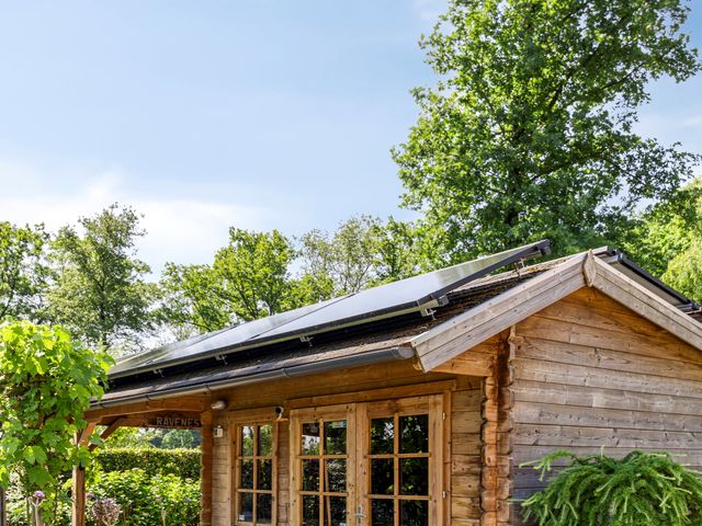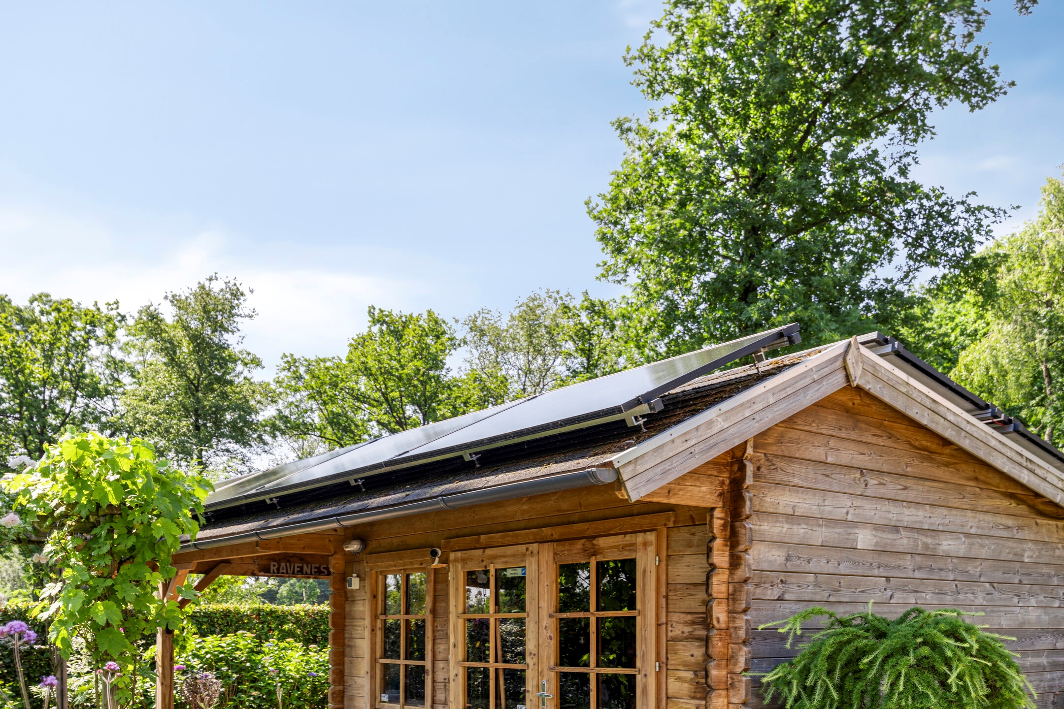 - Op het tuinhuis zijn 10 zonnepanelen geplaatst