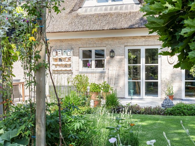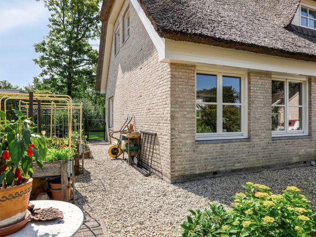 Deze prachtig vrijstaande en royale woning, gelegen op een perceel van circa 522 m², ademt dankzij de rieten kap de charme van een klassiek landhuis. De woning beschikt over twee slaapkamers en een fraai aangelegde, groenrijke achtertuin met een moestuin en een bijpassende berging. De tuin grenst direct aan het ven, wat zorgt voor een unieke en rustgevende ligging. De woning is gebouwd met hoogwaardige materialen en prachtig afgewerkt.