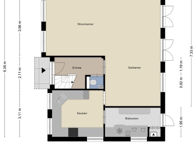 De gebruikte meetinstructie volgt de NEN2580-norm. Deze methode biedt een uniforme manier om het gebruiksoppervlak te benaderen. Door variaties in interpretatie, afronding of meetbeperkingen kunnen er toch afwijkingen ontstaan. De feitelijke situatie in het huis is leidend. De verstrekte oppervlakte-informatie is indicatief en mag niet als exact worden beschouwd. “Wat je ziet is wat je koopt” blijft het uitgangspunt.