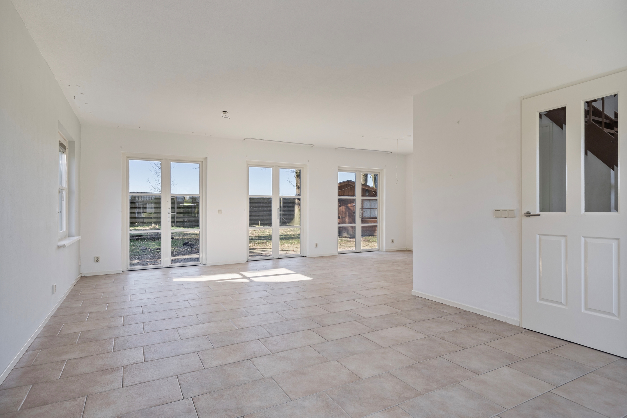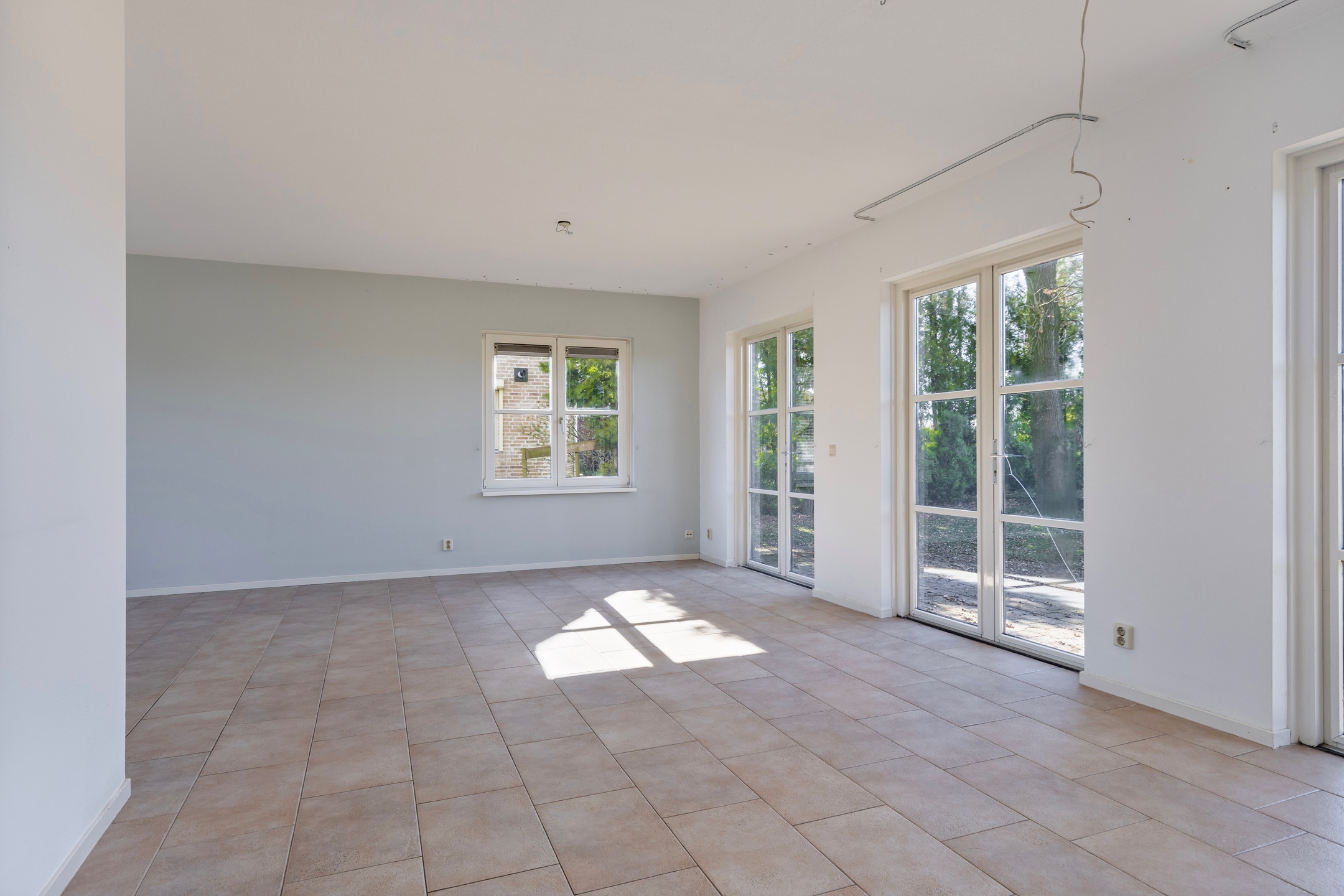 - Royale woonkamer met meerdere raampartijen en openslaande deuren naar de tuin