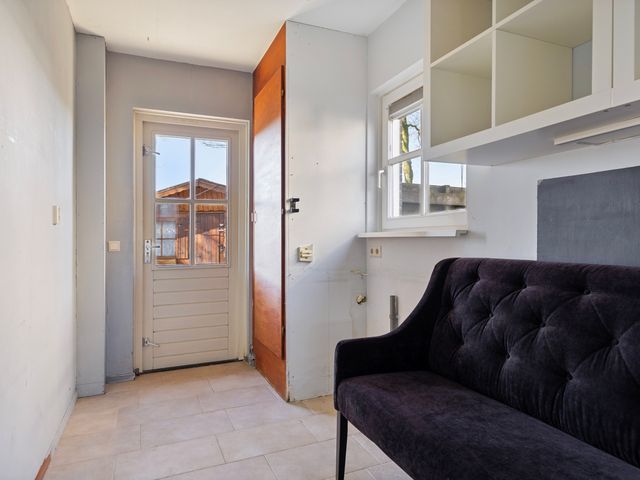 Vanuit de keuken is de bijkeuken toegankelijk. Deze praktische ruimte is ideaal voor het plaatsen van een was-droogcombinatie en een extra koelkast. Tevens is hier de cv-ketel geplaatst en heeft u vanuit de bijkeuken direct toegang tot de tuin.