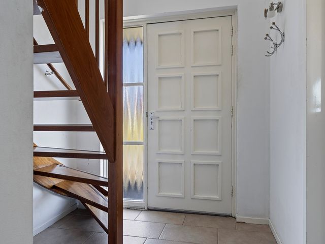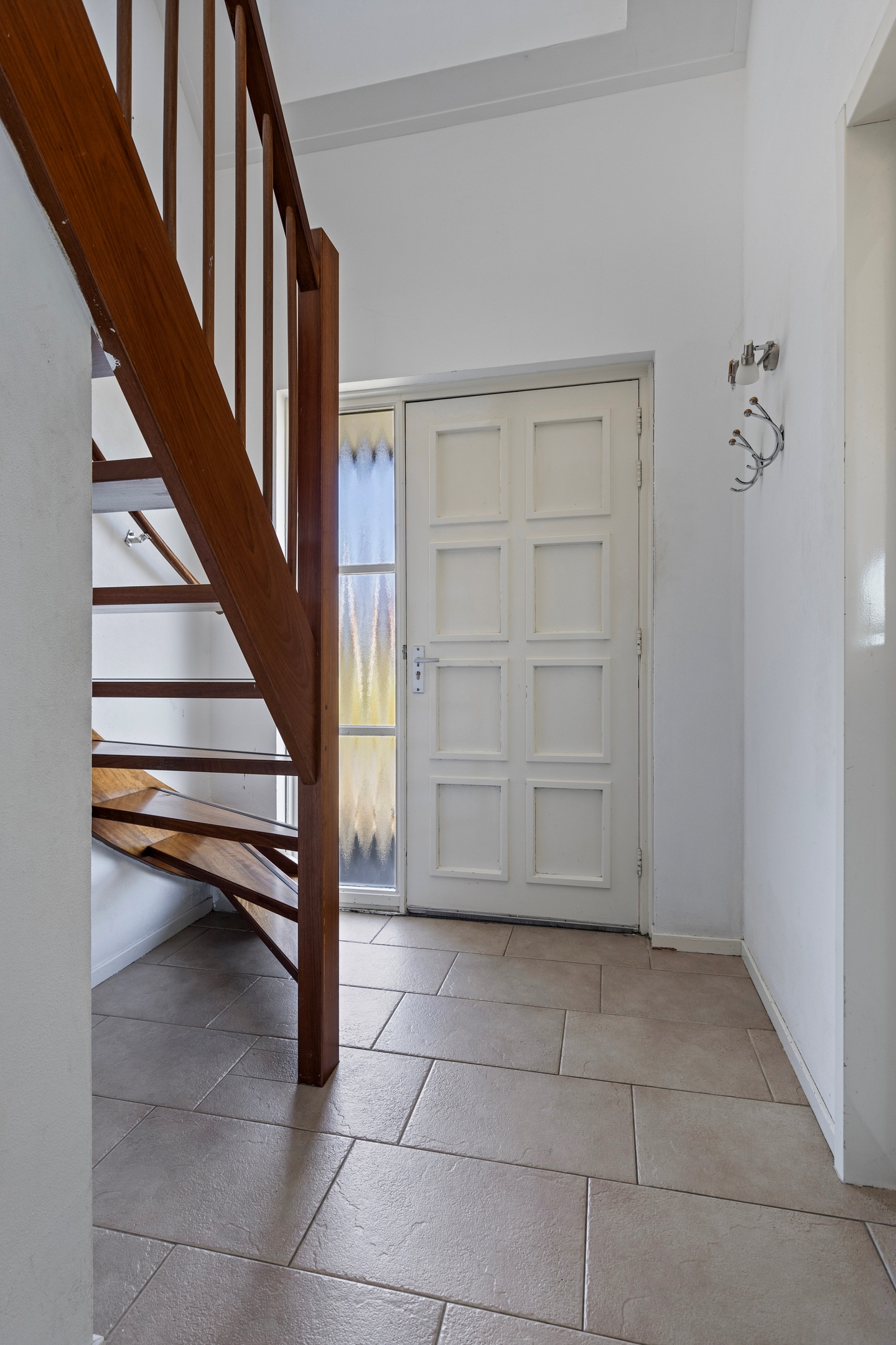 In de ruime ontvangsthal bevindt zich een stijlvolle trap naar de eerste verdieping. Vanuit de hal heeft u toegang tot de nette toiletruimte en de woonkamer.