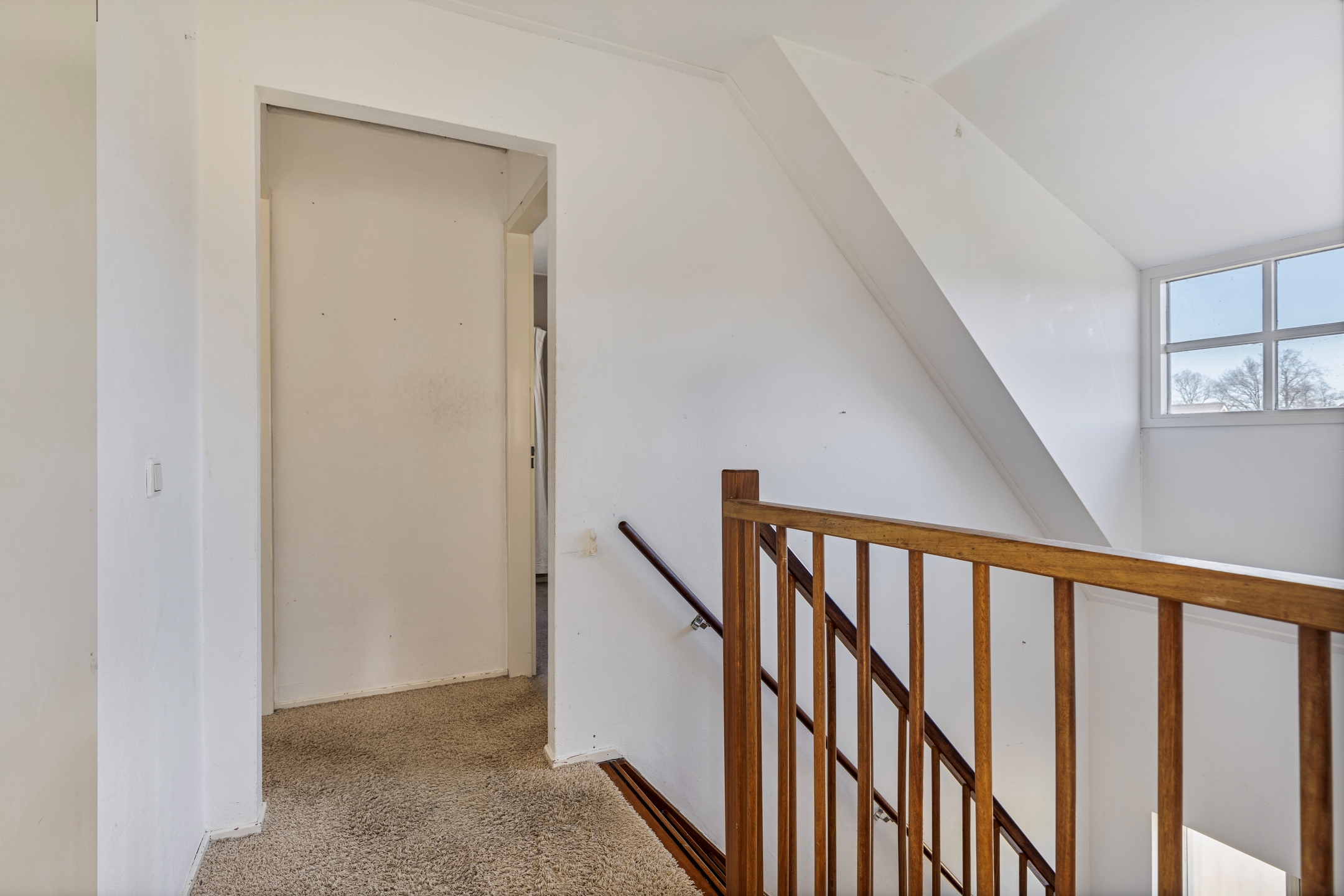 De trap in de ontvangsthal leidt naar de overloop op de eerste verdieping. Vanuit hier heeft u toegang tot drie volwaardige slaapkamers en de badkamer. De gehele verdieping is voorzien van vloerbedekking met uitzondering van de badkamer.