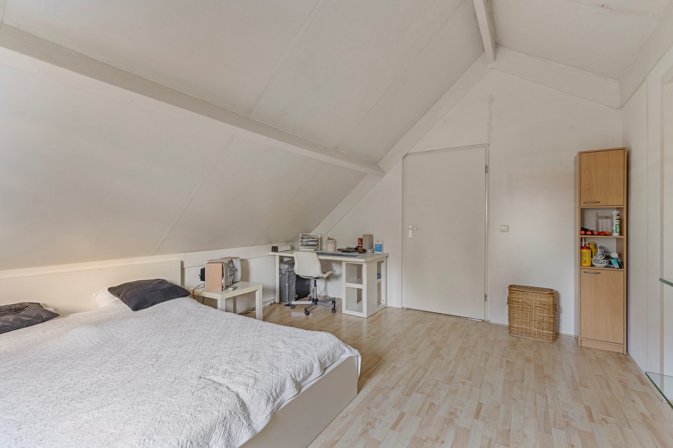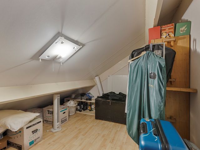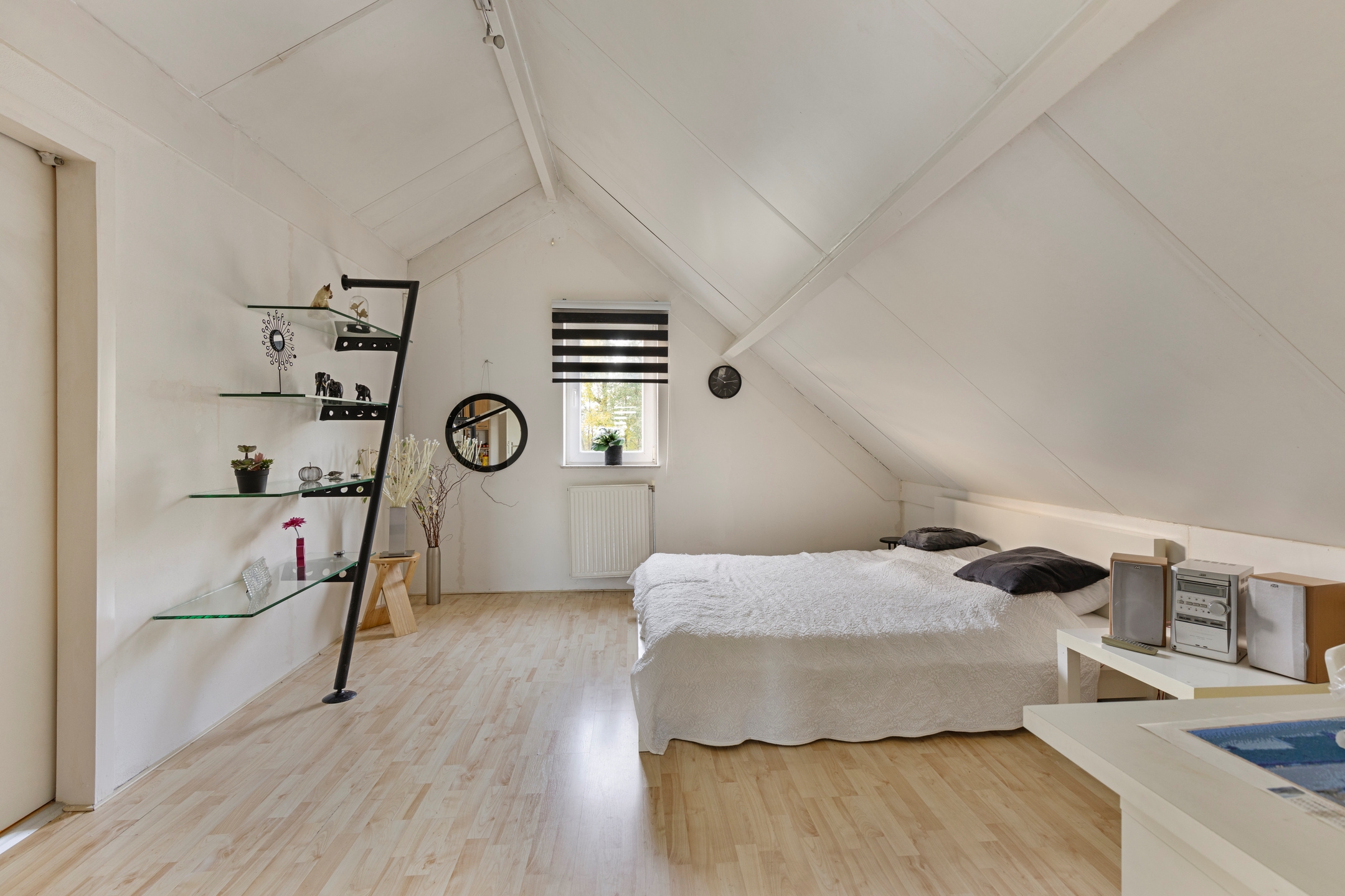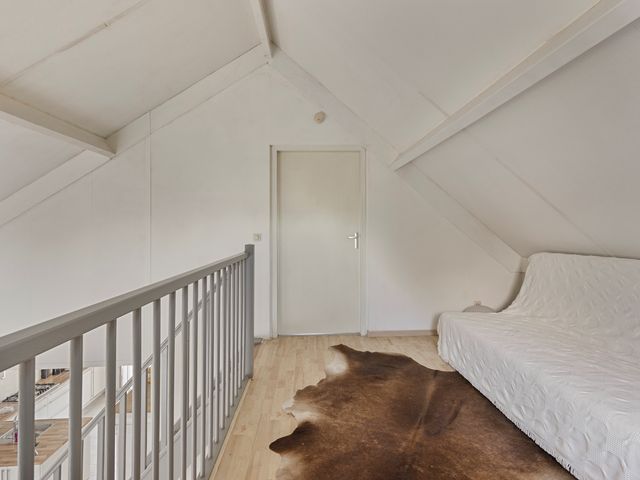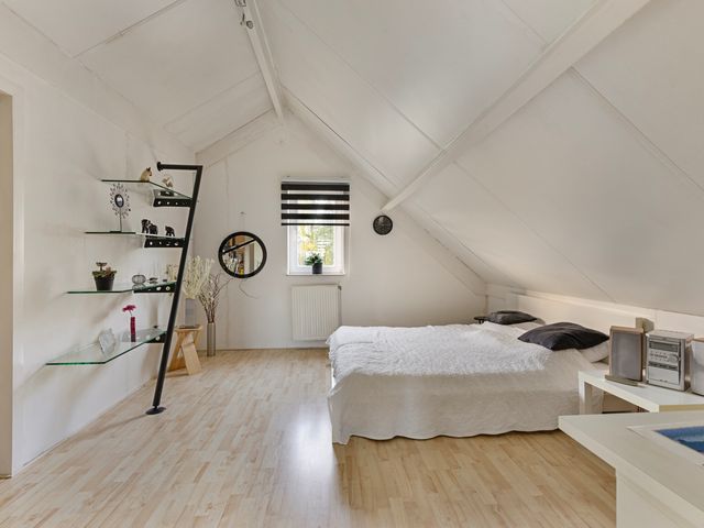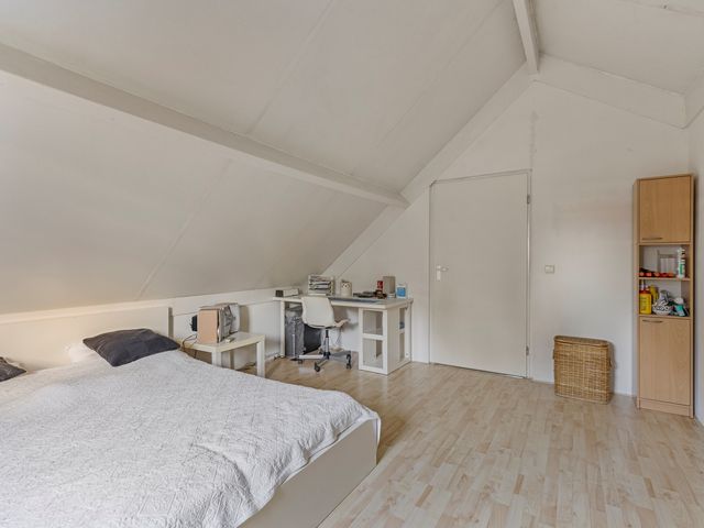 De ruime slaapkamer is afgewerkt met een laminaatvloer en heeft stucwerk wandafwerking. De slaapkamer geeft toegang tot een ruime berging. De verdieping wordt verwarmd door middel van radiatoren.