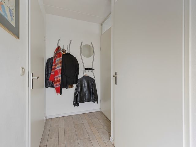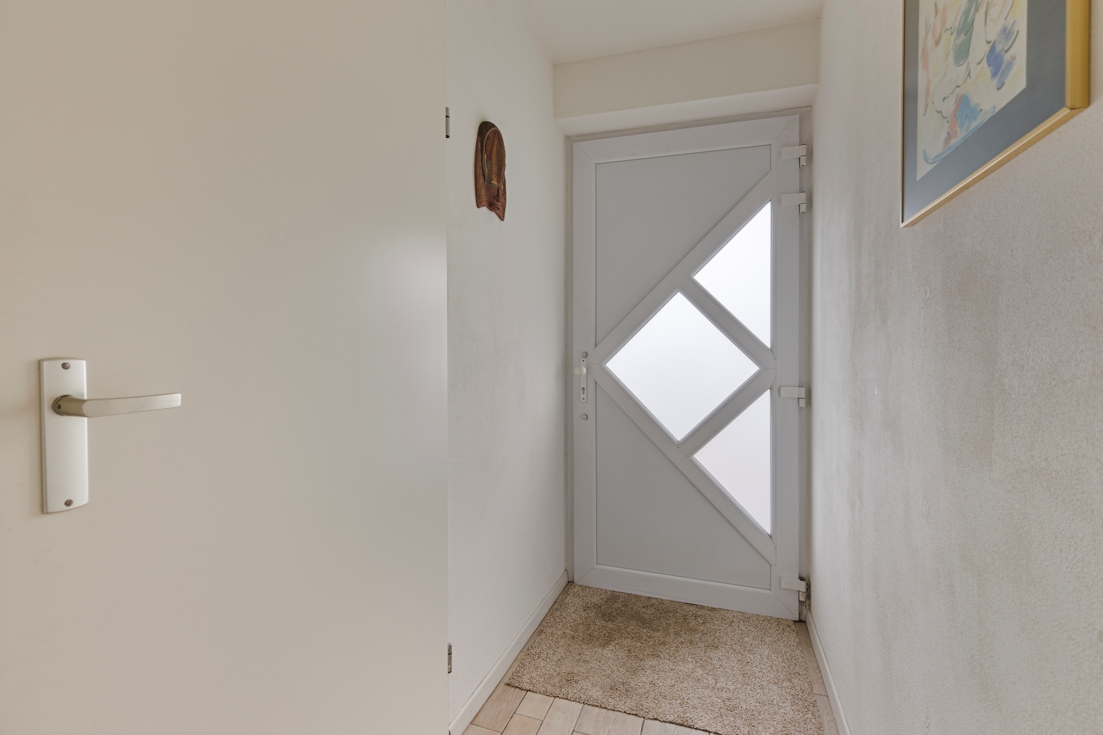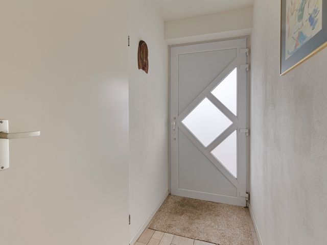 De ontvangsthal geeft toegang tot de woonkamer, de wasruimte en het toilet.