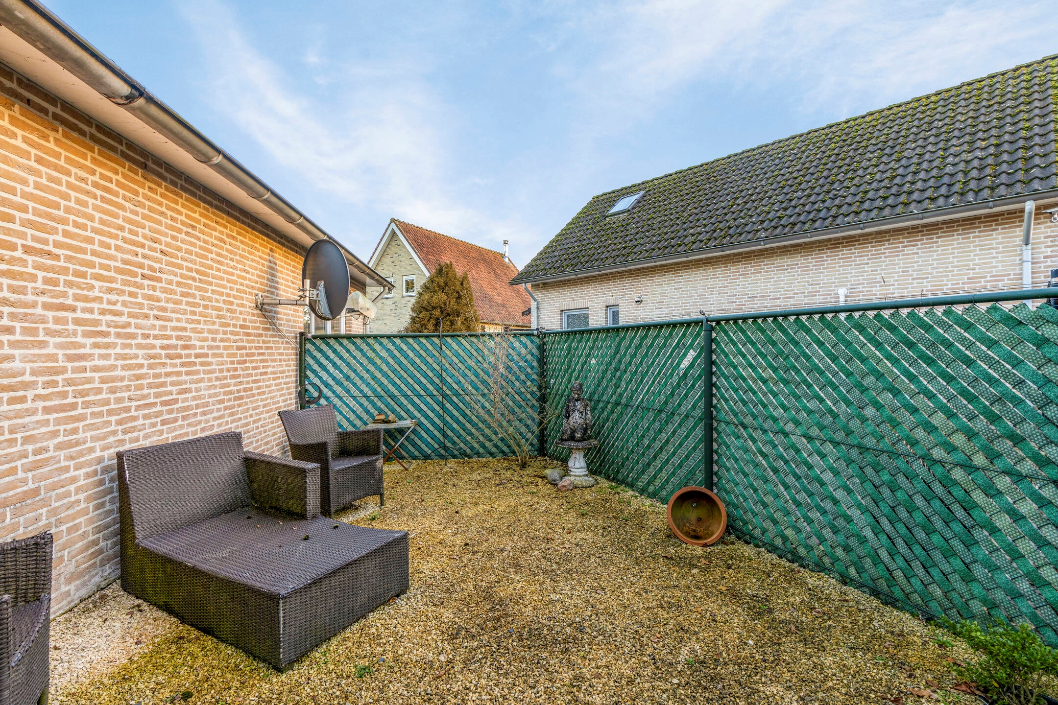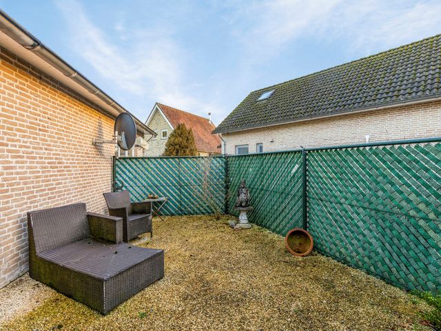 De privacy biedende achtertuin is voorzien van sierbestrating, grind en een buiten waterkraan.